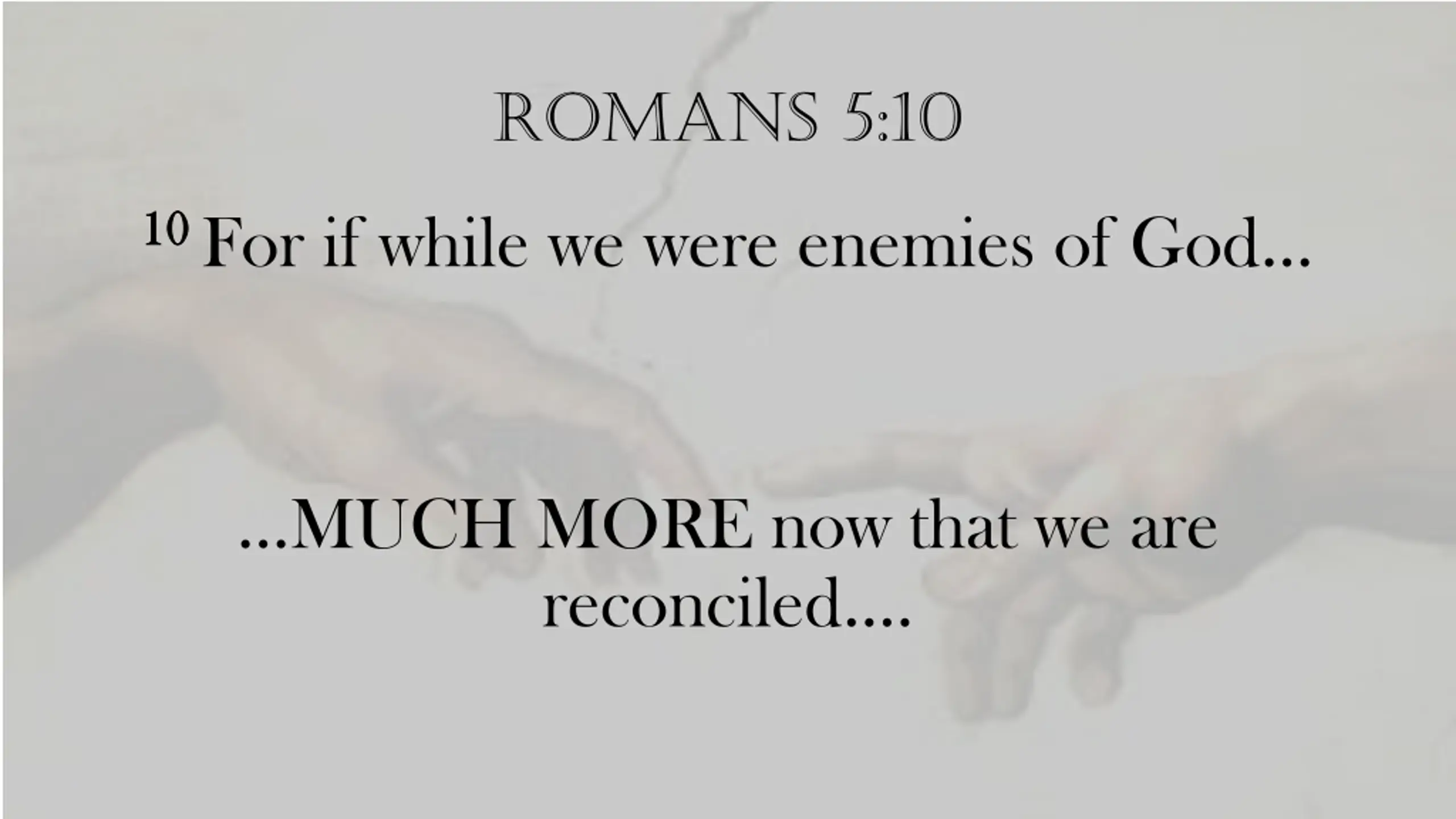Romans 5:10 10 10For if while we were enemies of God MUCH MORE now that we are reconciled .