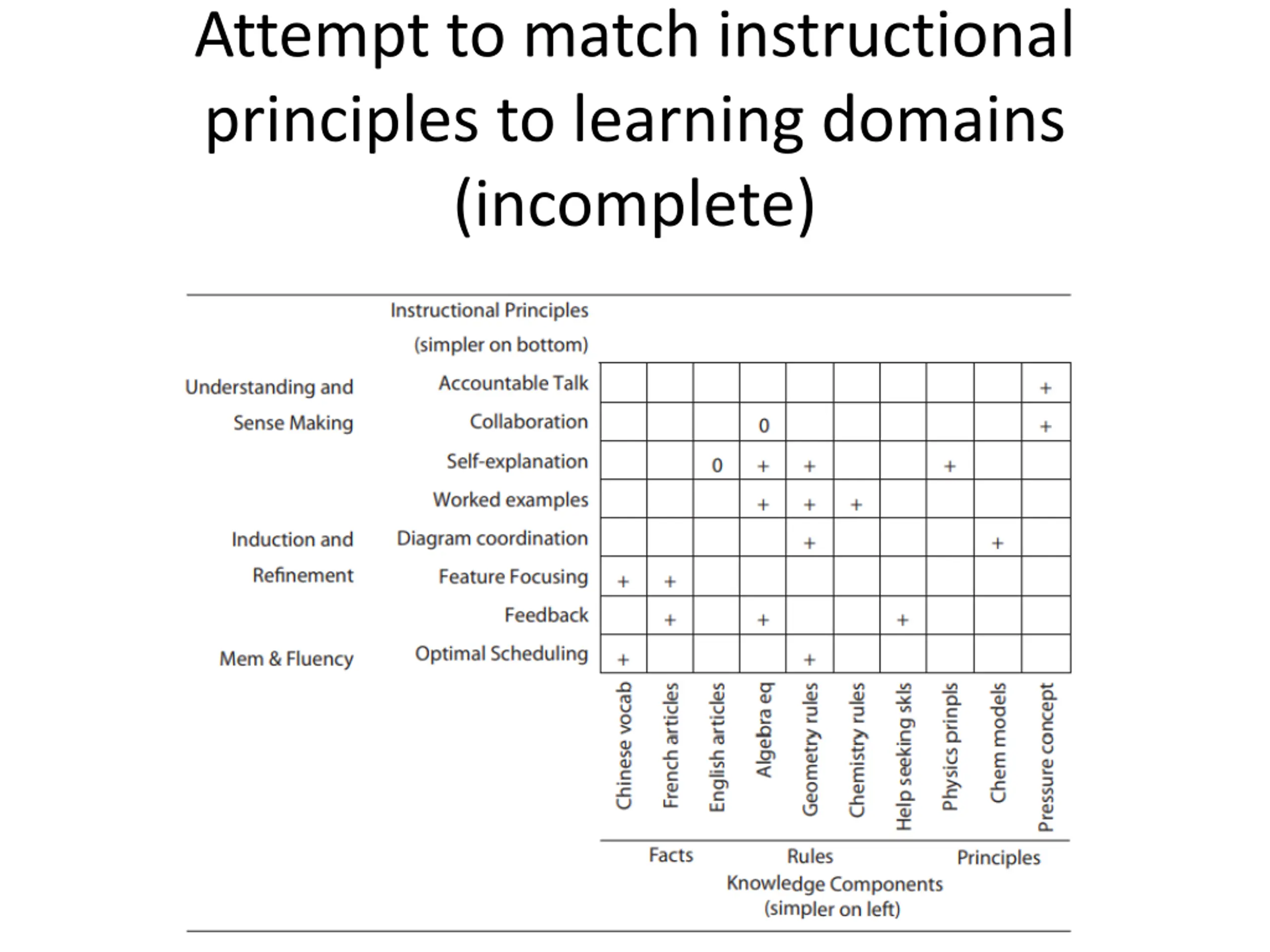 Attempt to match instructional principles to learning domains (incomplete)