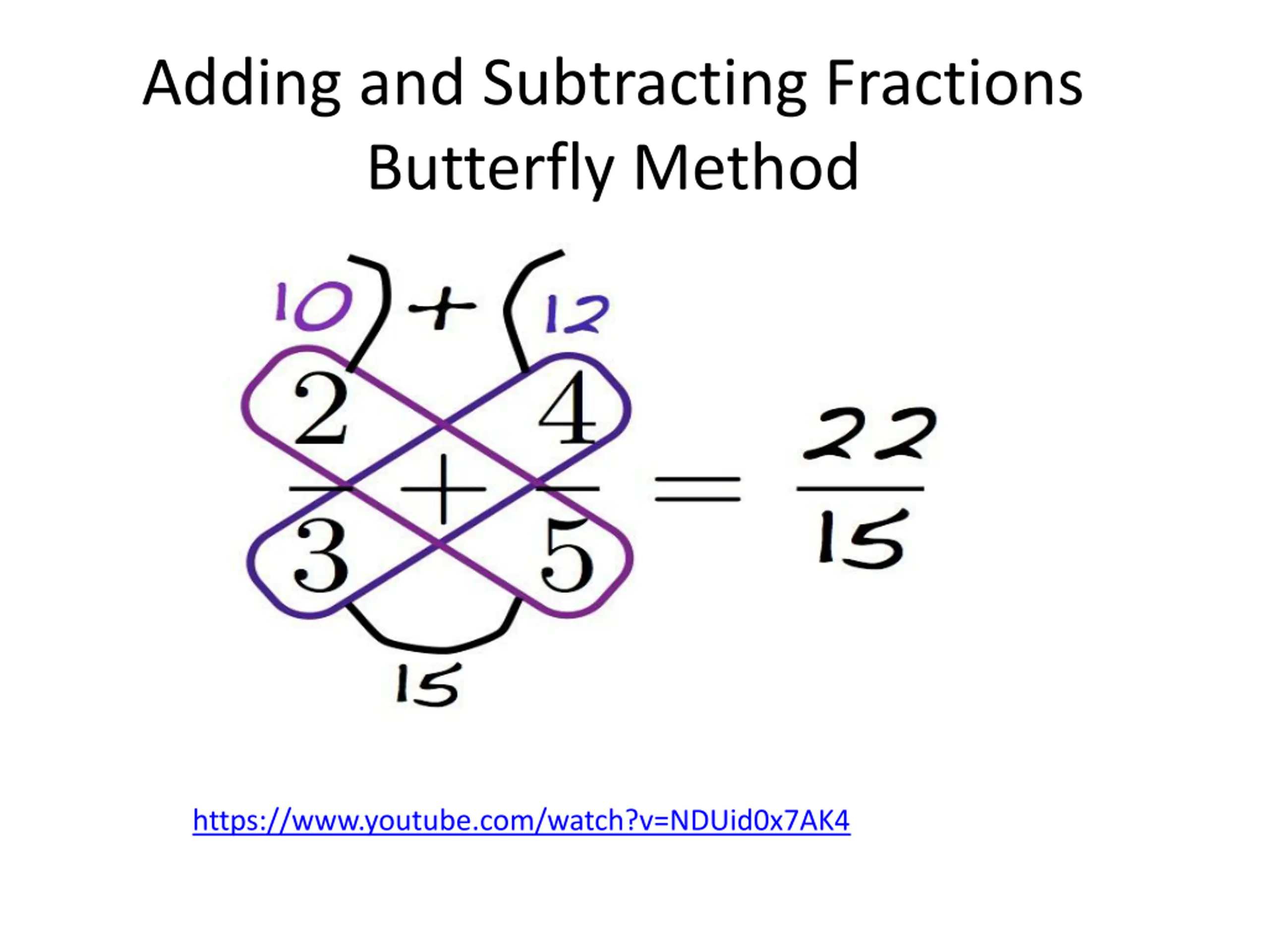 Adding and Subtracting Fractions Butterfly Method https://www.youtube.com/watch?v=NDUid0x7AK4