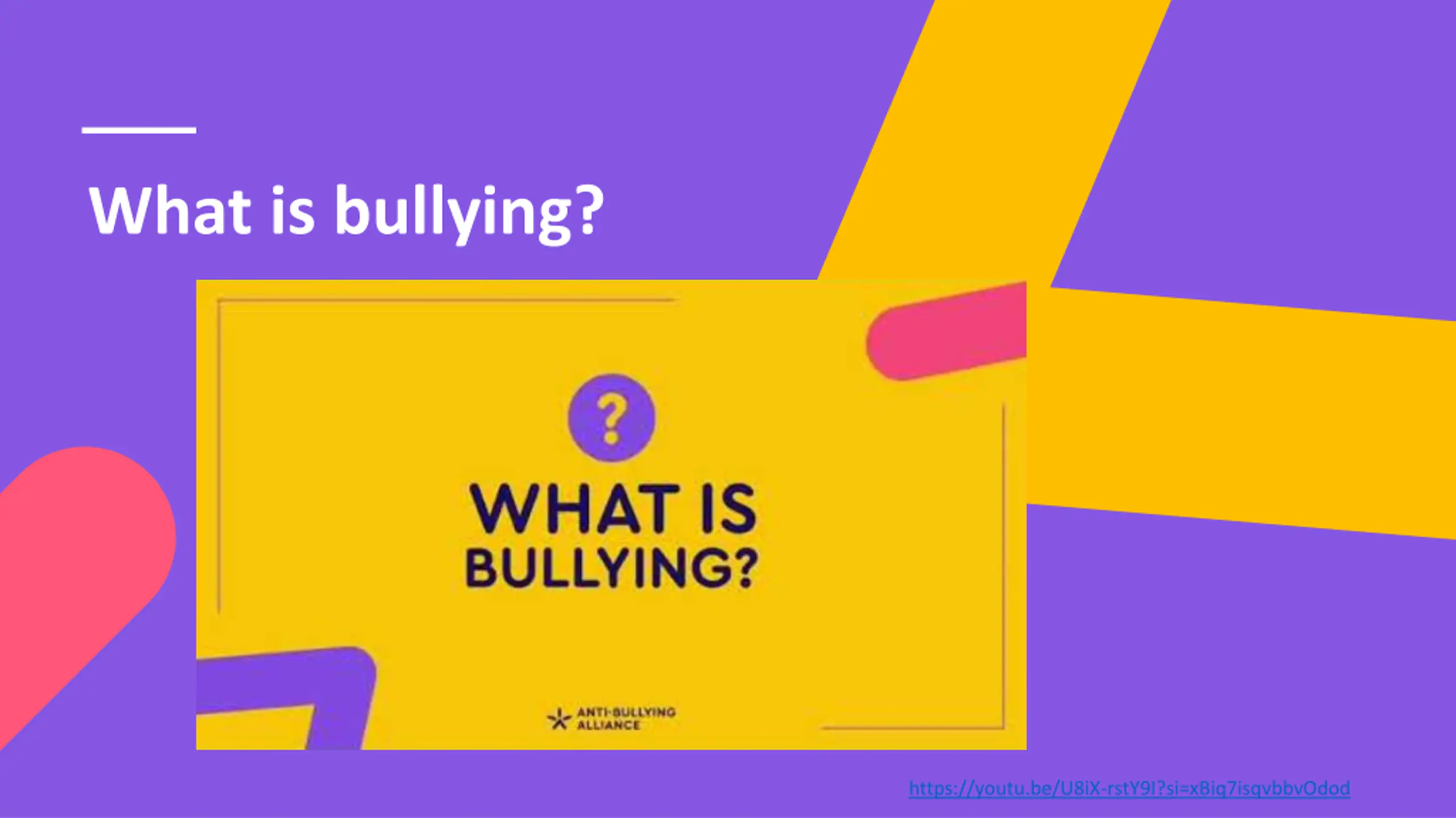 What is bullying? https://youtu.be/U8iX-rstY9I?si=xBiq7isqvbbvOdod