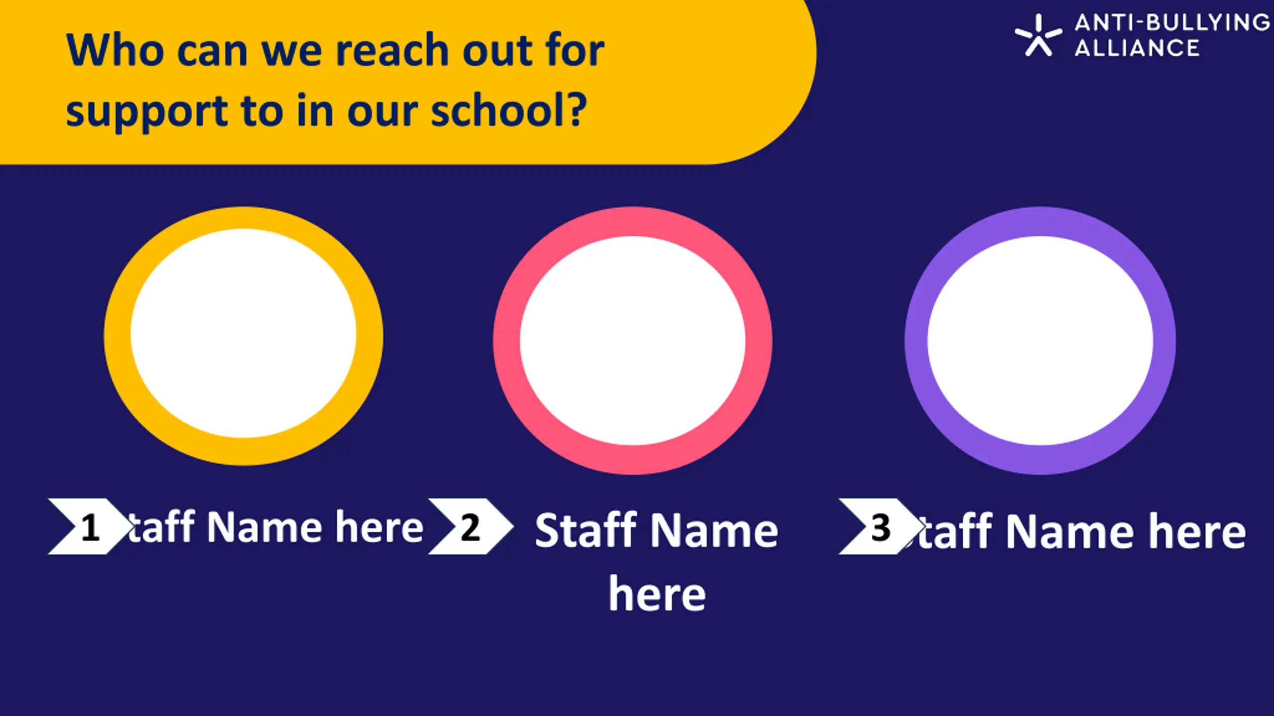 Who can we reach out for support to in our school? Staff Name here Staff Name here Staff Name here 3 1 2