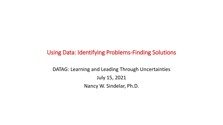 Using Data: Identifying Problems Using Data: Identifying Problems- -Finding Solutions Finding Solutions DATAG: Learning and Leading Through Uncertainties July 15, 2021 Nancy W. Sindelar, Ph.D.