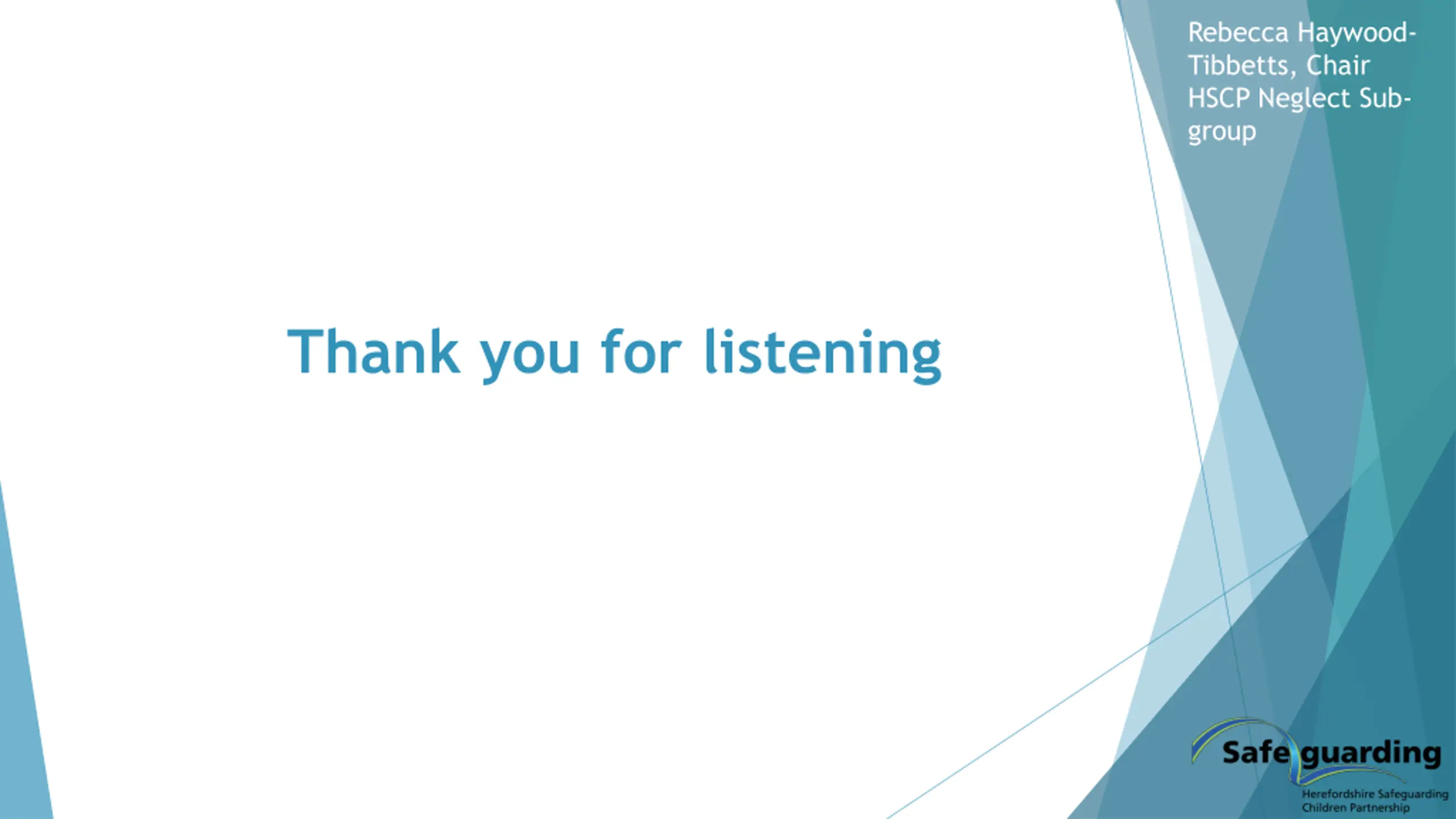 Rebecca Haywood- Tibbetts, Chair HSCP Neglect Sub- group Thank you for listening