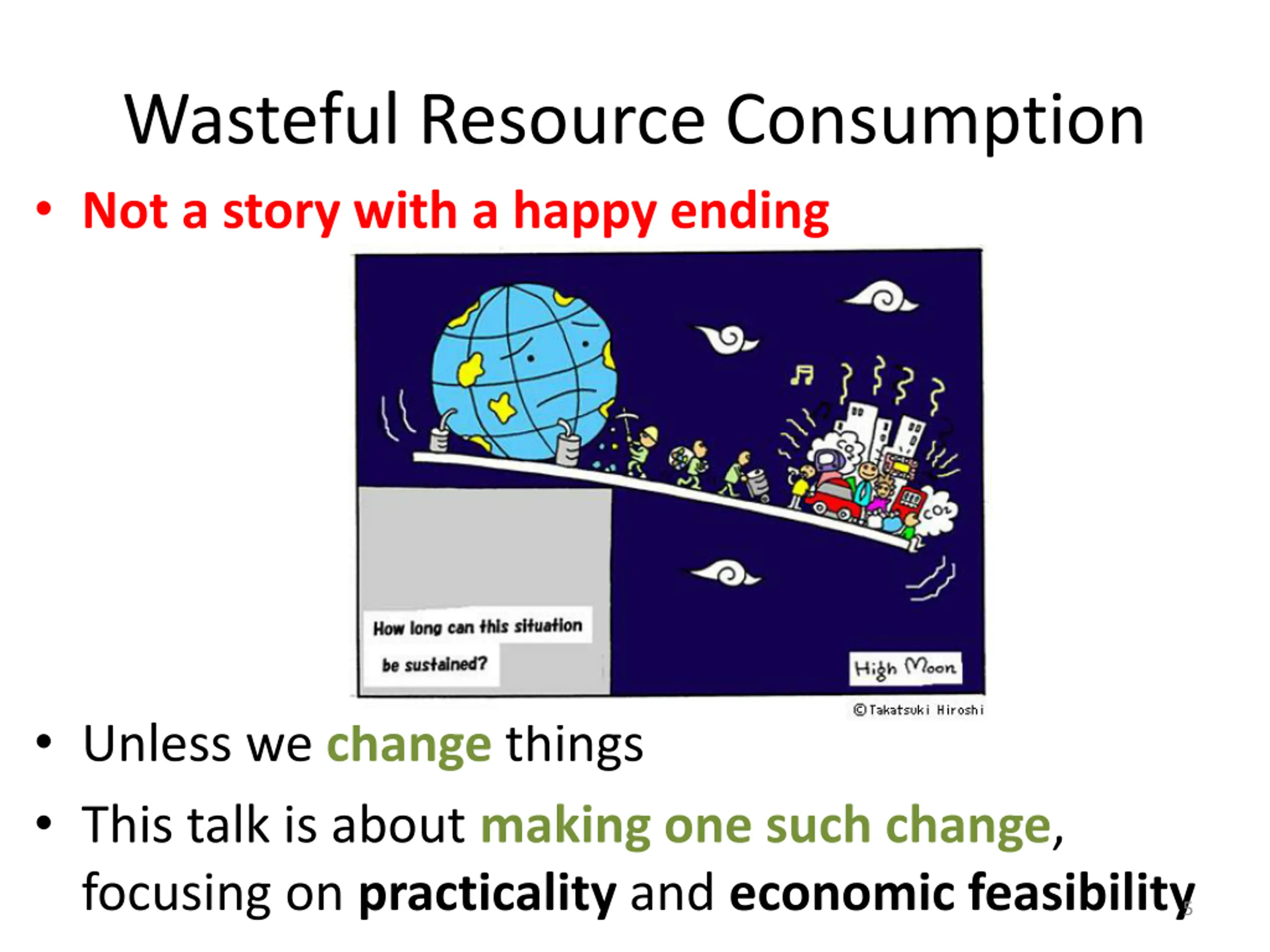 Wasteful Resource Consumption Not a story with a happy ending Unless we change things This talk is about making one such change, focusing on practicality and economic feasibility5