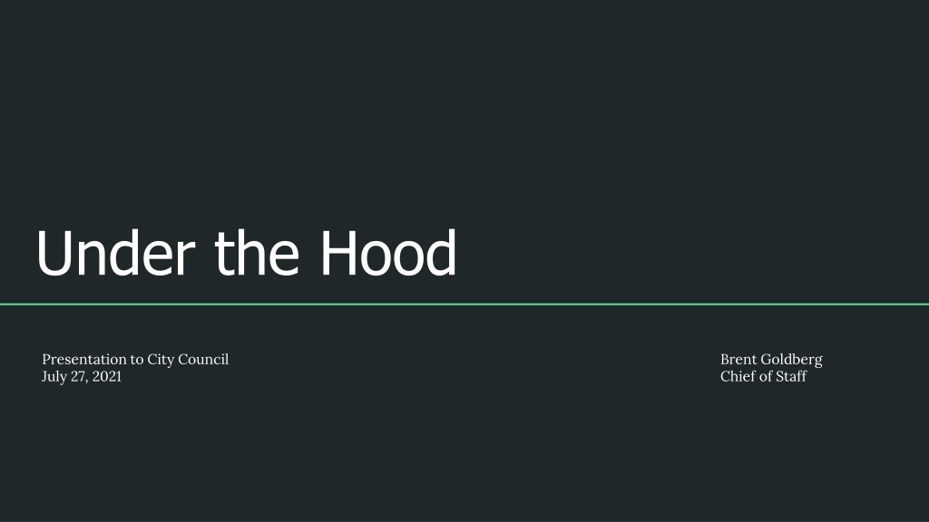 Under the Hood Presentation to City Council July 27, 2021 Brent Goldberg Chief of Staff