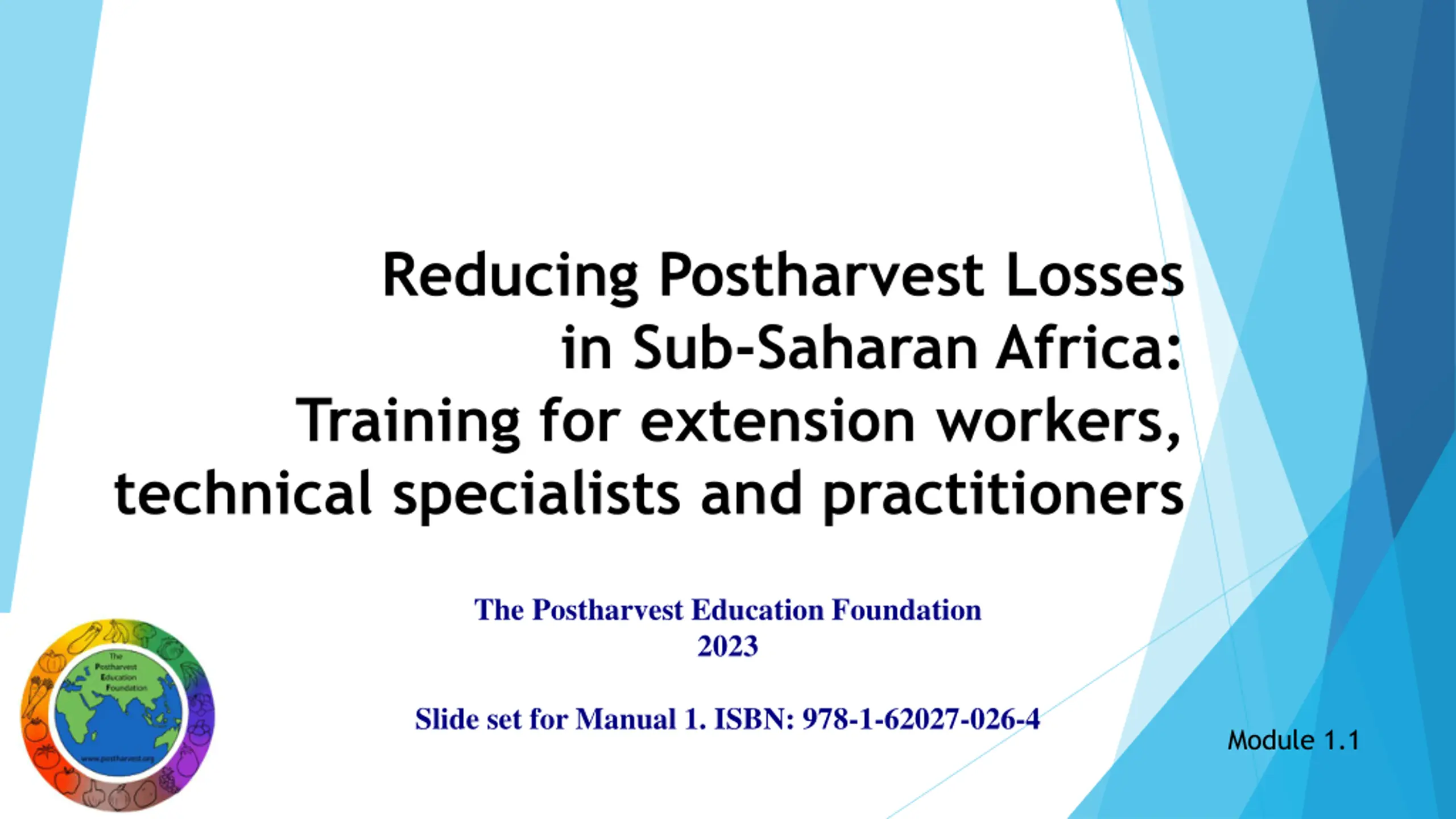 Reducing Postharvest Losses in Sub-Saharan Africa: Training for extension workers, technical specialists and practitioners The Postharvest Education Foundation 2023 Slide set for Manual 1. ISBN: 978-1-62027-026-4 Module 1.1