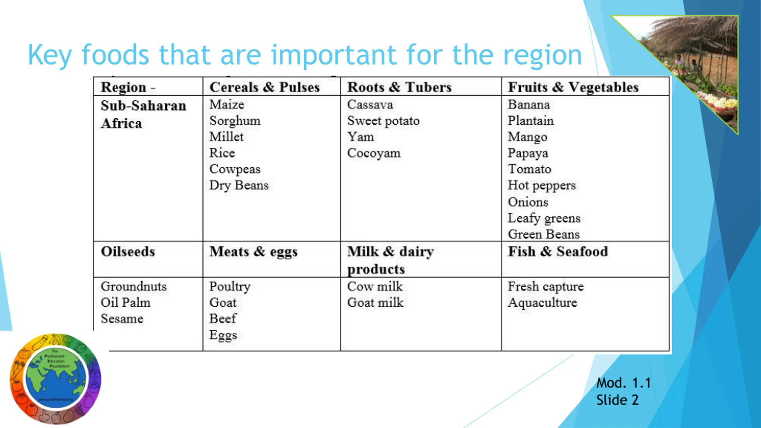 Key foods that are important for the region Mod. 1.1 Slide 2