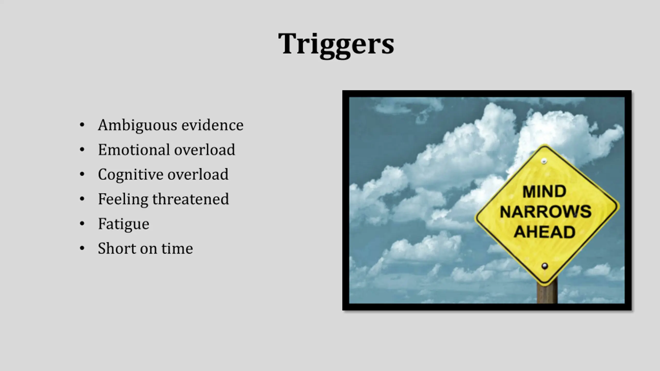 Triggers Ambiguous evidence Emotional overload Cognitive overload Feeling threatened Fatigue Short on time