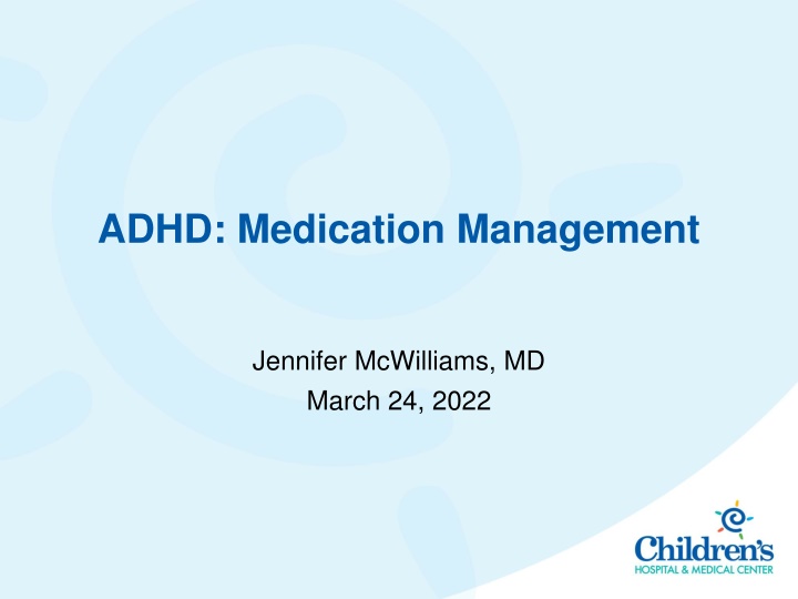 ADHD: Medication Management Jennifer McWilliams, MD March 24, 2022
