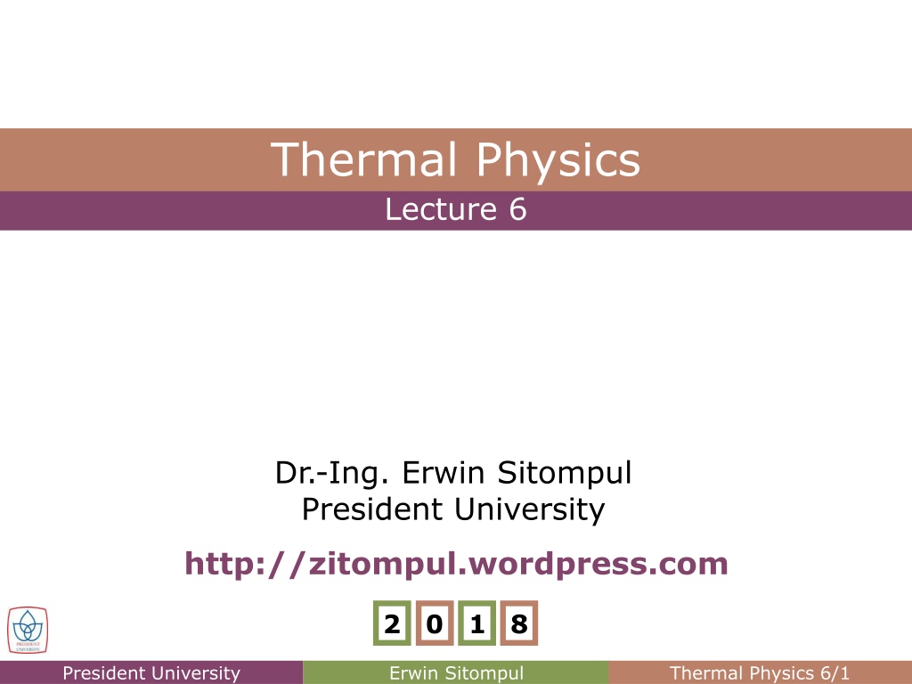 Thermal Physics Lecture 6 Dr.-Ing. Erwin Sitompul President University http://zitompul.wordpress.com 2 0 1 8 President University Erwin Sitompul Thermal Physics 6/1