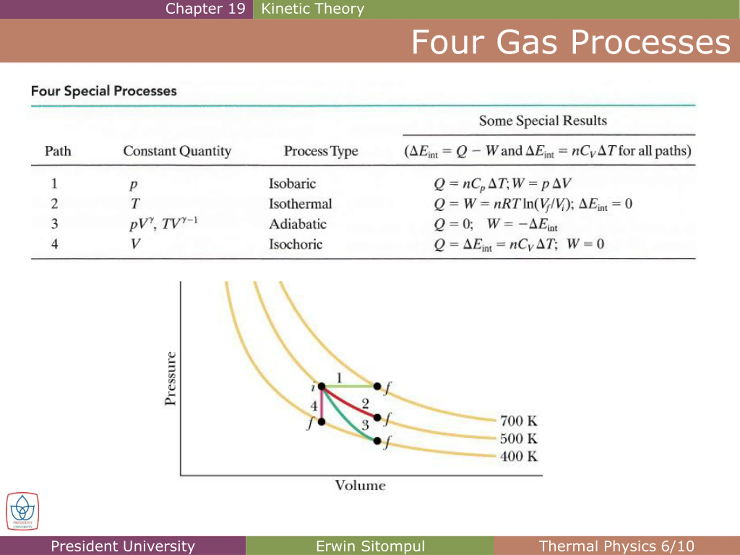 Chapter 19 Kinetic Theory Four Gas Processes President University Erwin Sitompul Thermal Physics 6/10