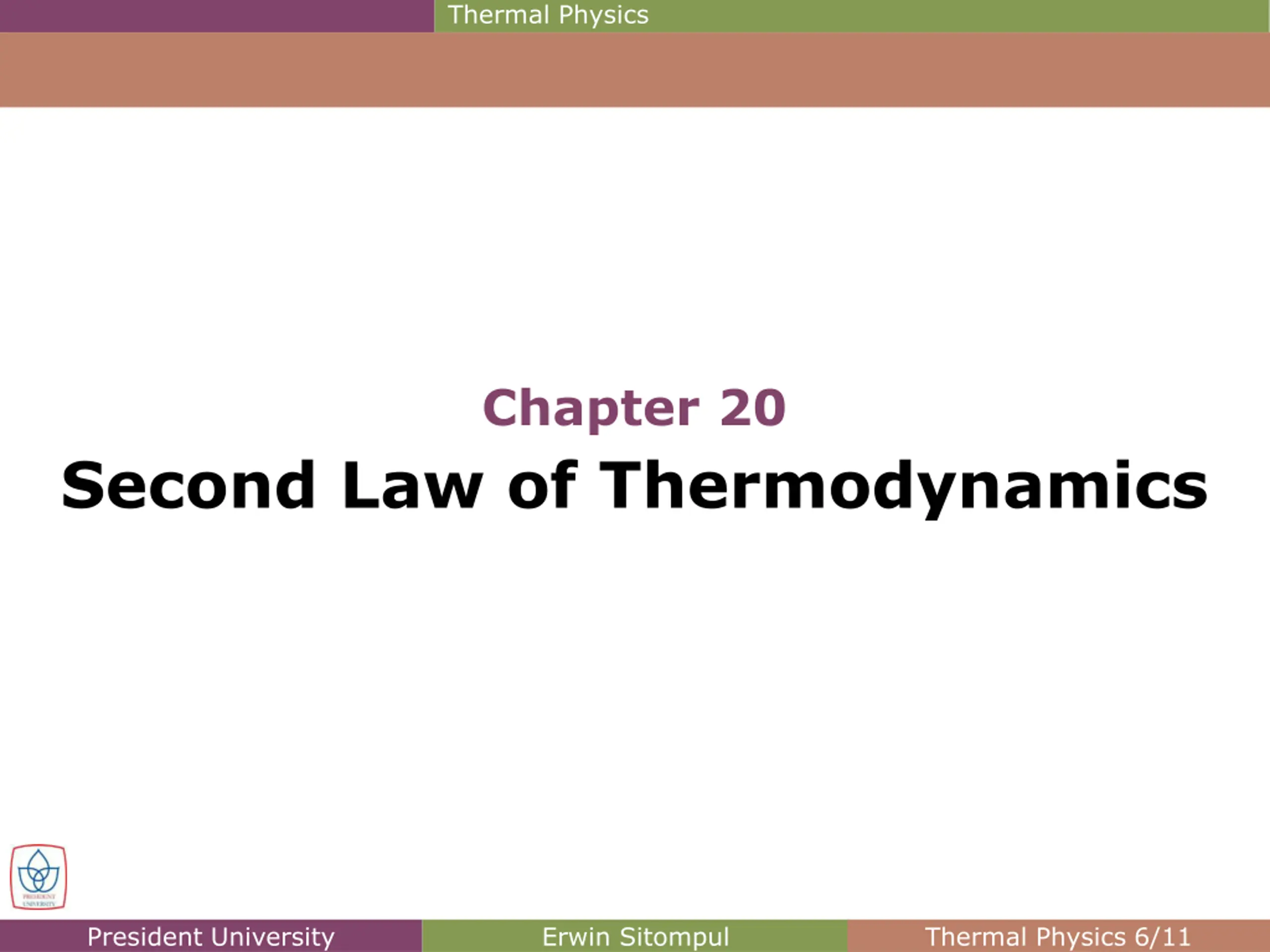 Thermal Physics Chapter 20 Second Law of Thermodynamics President University Erwin Sitompul Thermal Physics 6/11