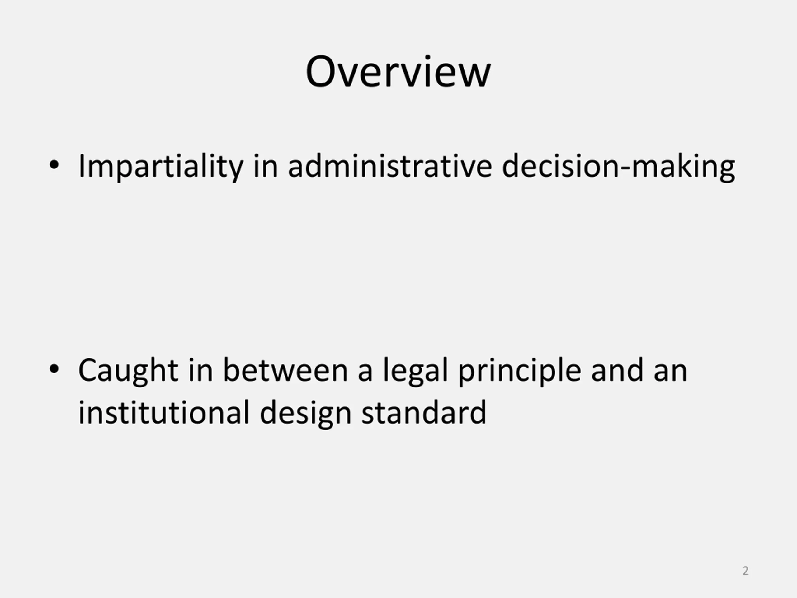 Overview Impartiality in administrative decision-making Caught in between a legal principle and an institutional design standard 2