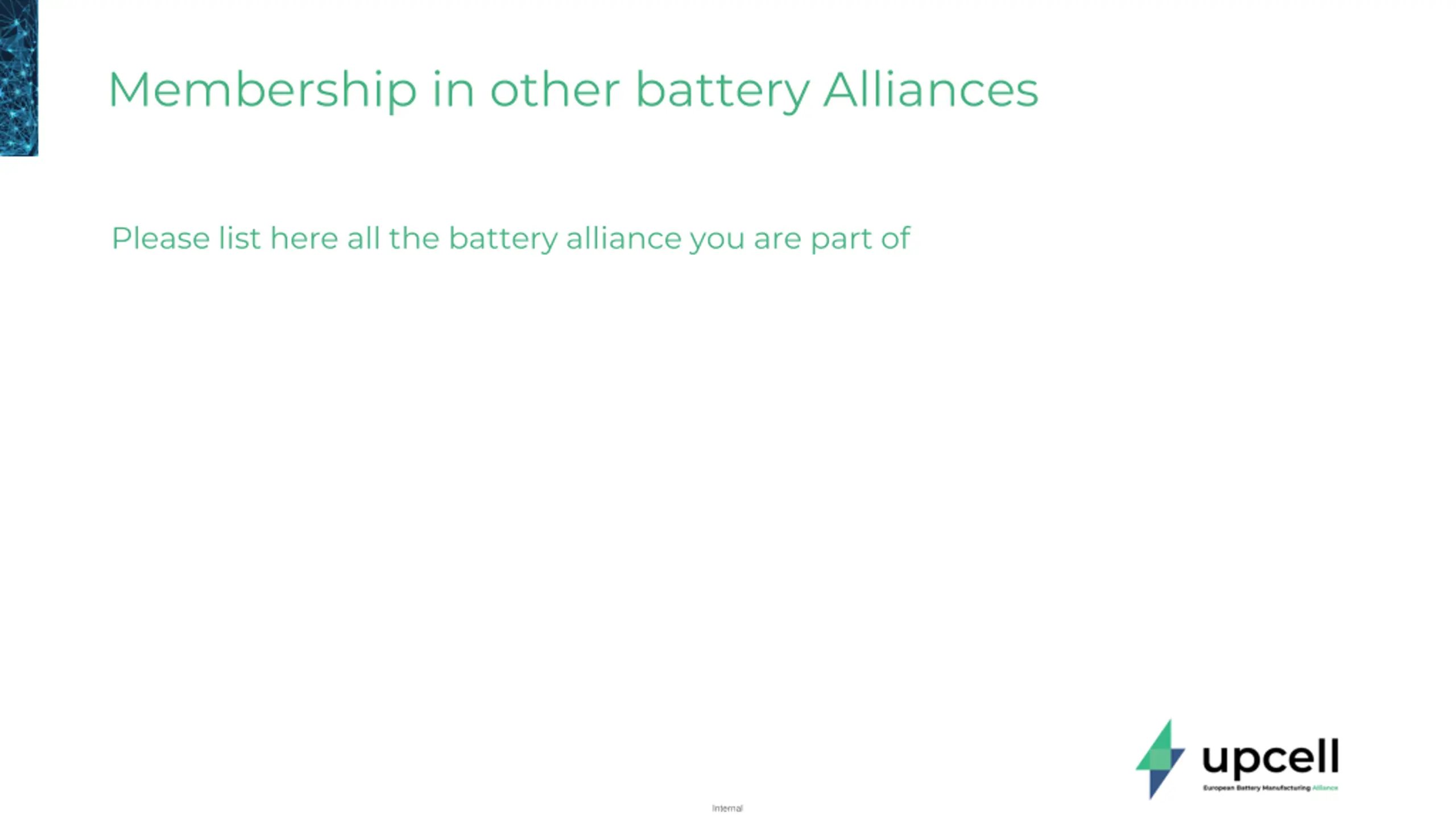 Membership in other battery Alliances Please list here all the battery alliance you are part of Internal