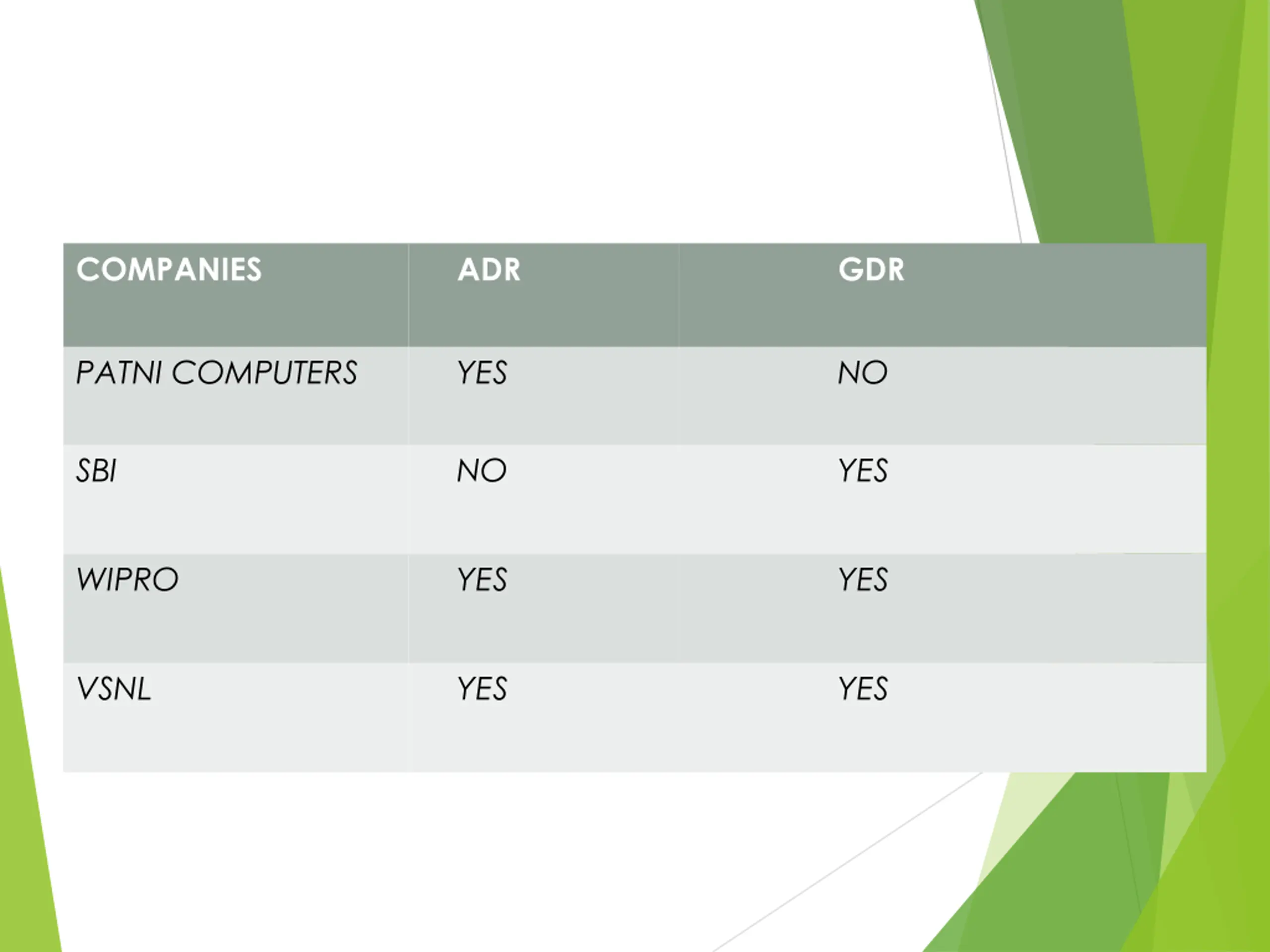 COMPANIES ADR GDR PATNI COMPUTERS YES NO SBI NO YES WIPRO YES YES VSNL YES YES