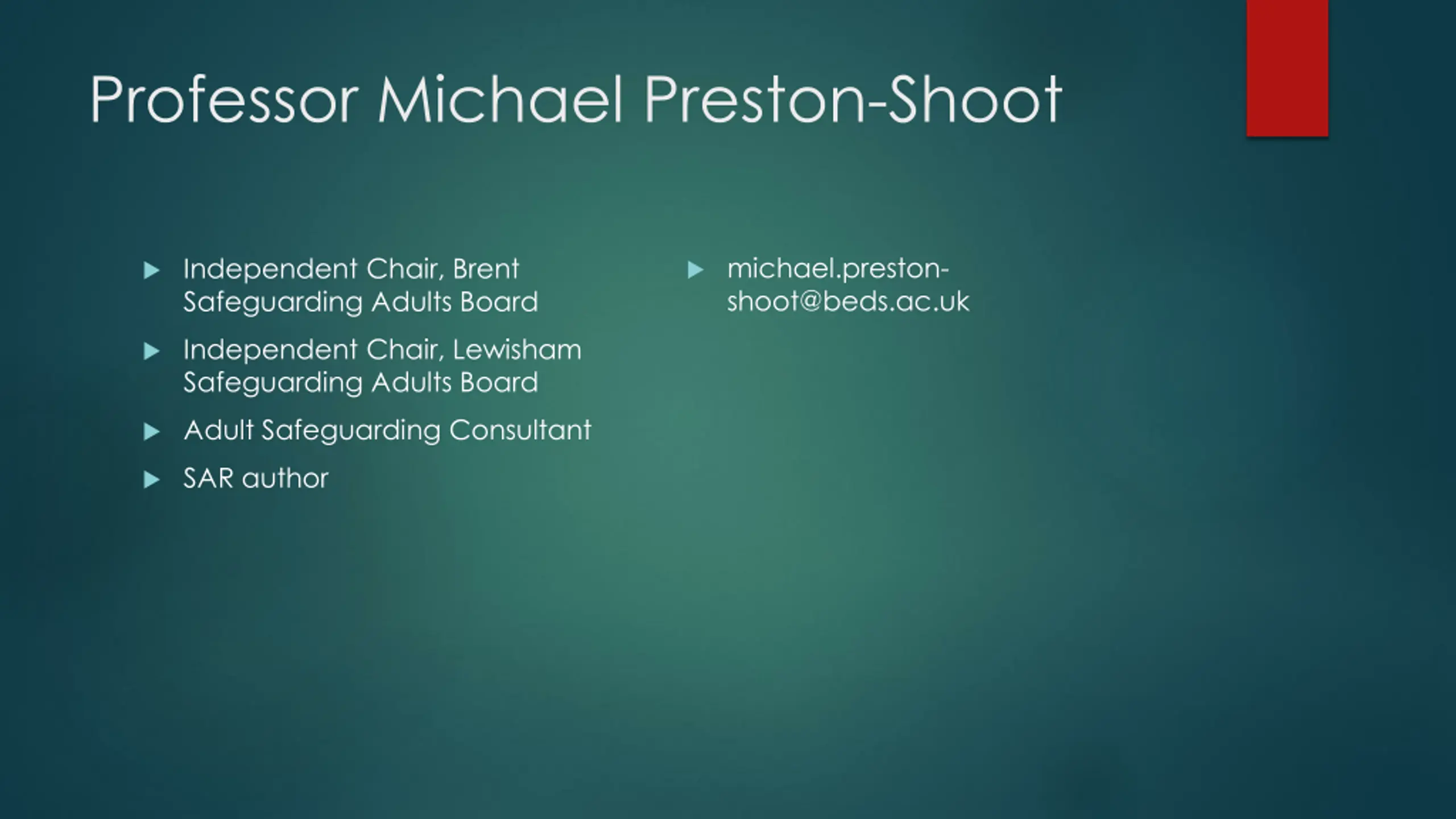 Professor Michael Preston-Shoot michael.preston- shoot@beds.ac.uk Independent Chair, Brent Safeguarding Adults Board Independent Chair, Lewisham Safeguarding Adults Board Adult Safeguarding Consultant SAR author