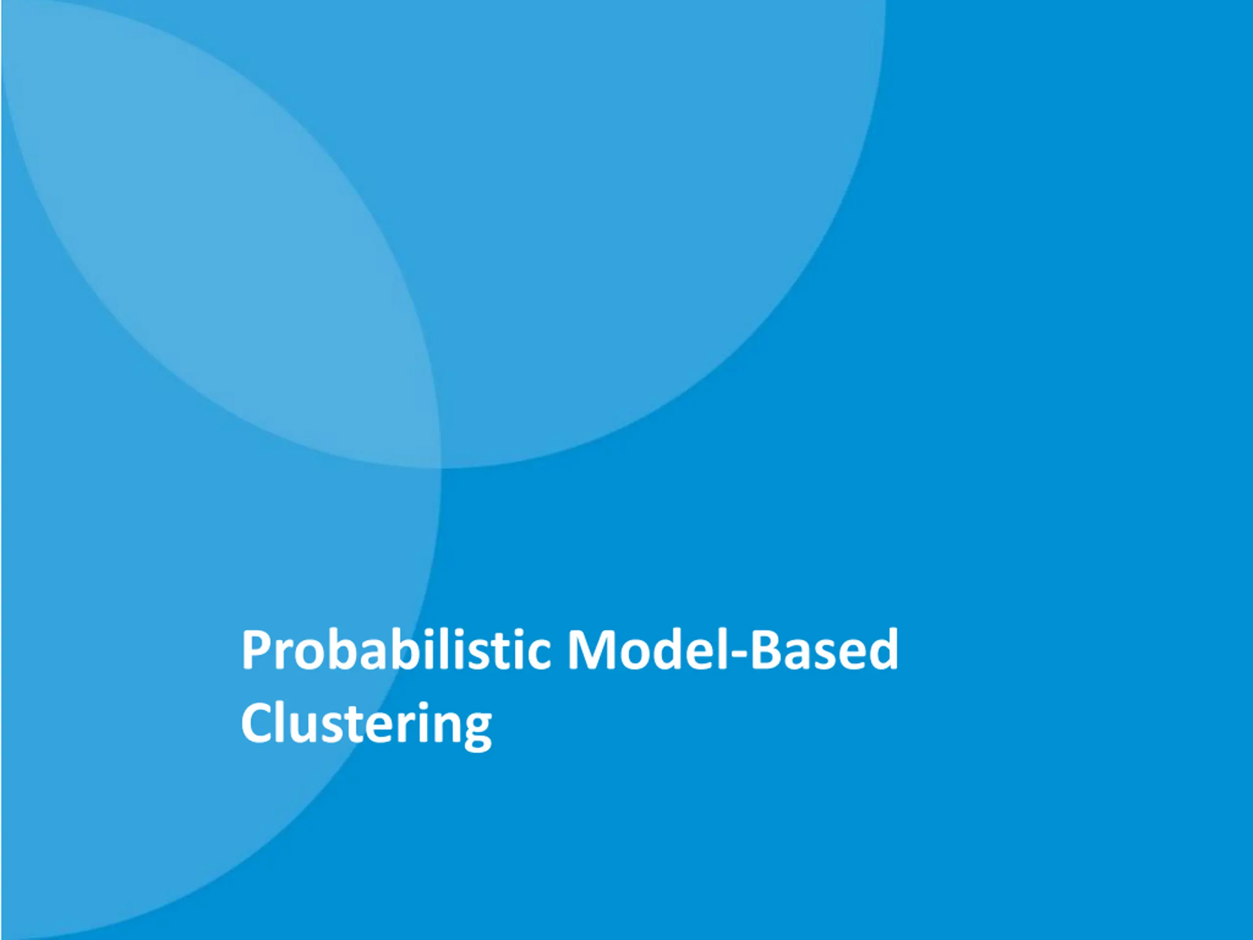 Probabilistic Model- Based Clustering Probabilistic model-based clustering frameworks assume: A hidden category is a distribution over the data space, which can be mathematically represented using a probability density function. Data has been generated from K probability distributions The data we can described by finding the statistical model that best fits the data. The statistical process involves deciding on a statistical model, e.g. Gaussian Mixture Models, and estimating the distribution parameters of the model from the data EM Algorithm