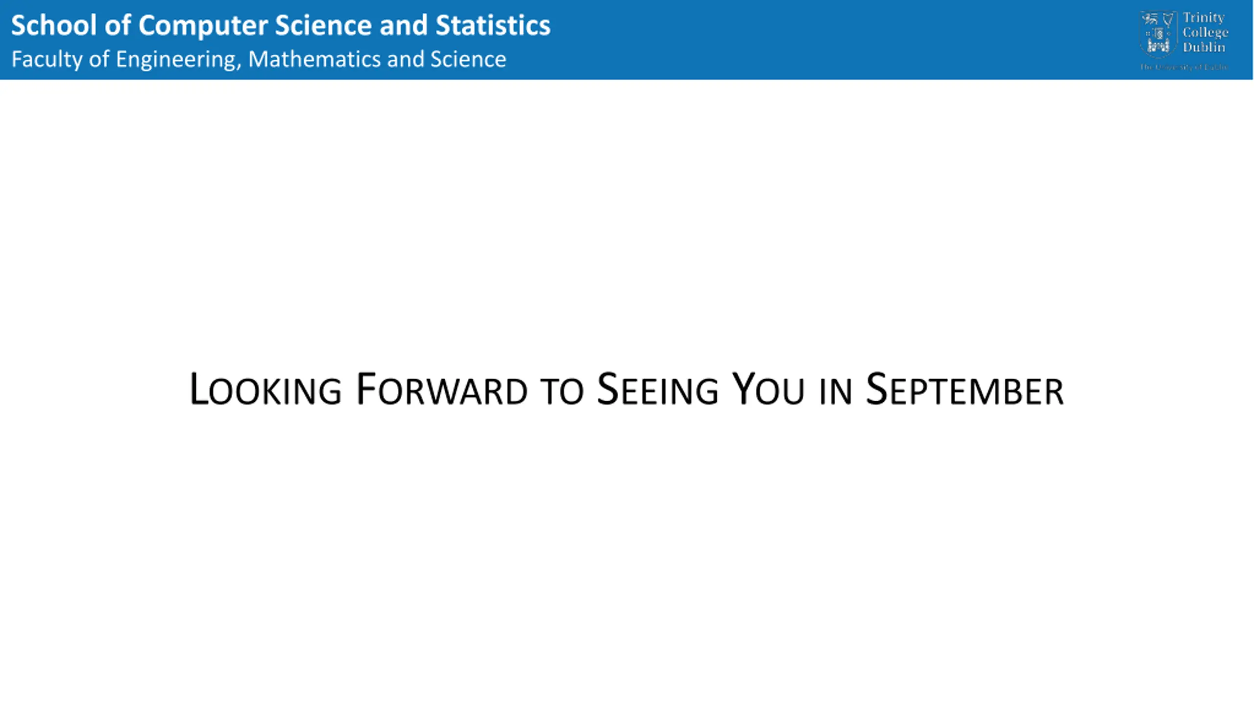 School of Computer Science and Statistics Faculty of Engineering, Mathematics and Science LOOKING FORWARDTO SEEING YOUIN SEPTEMBER