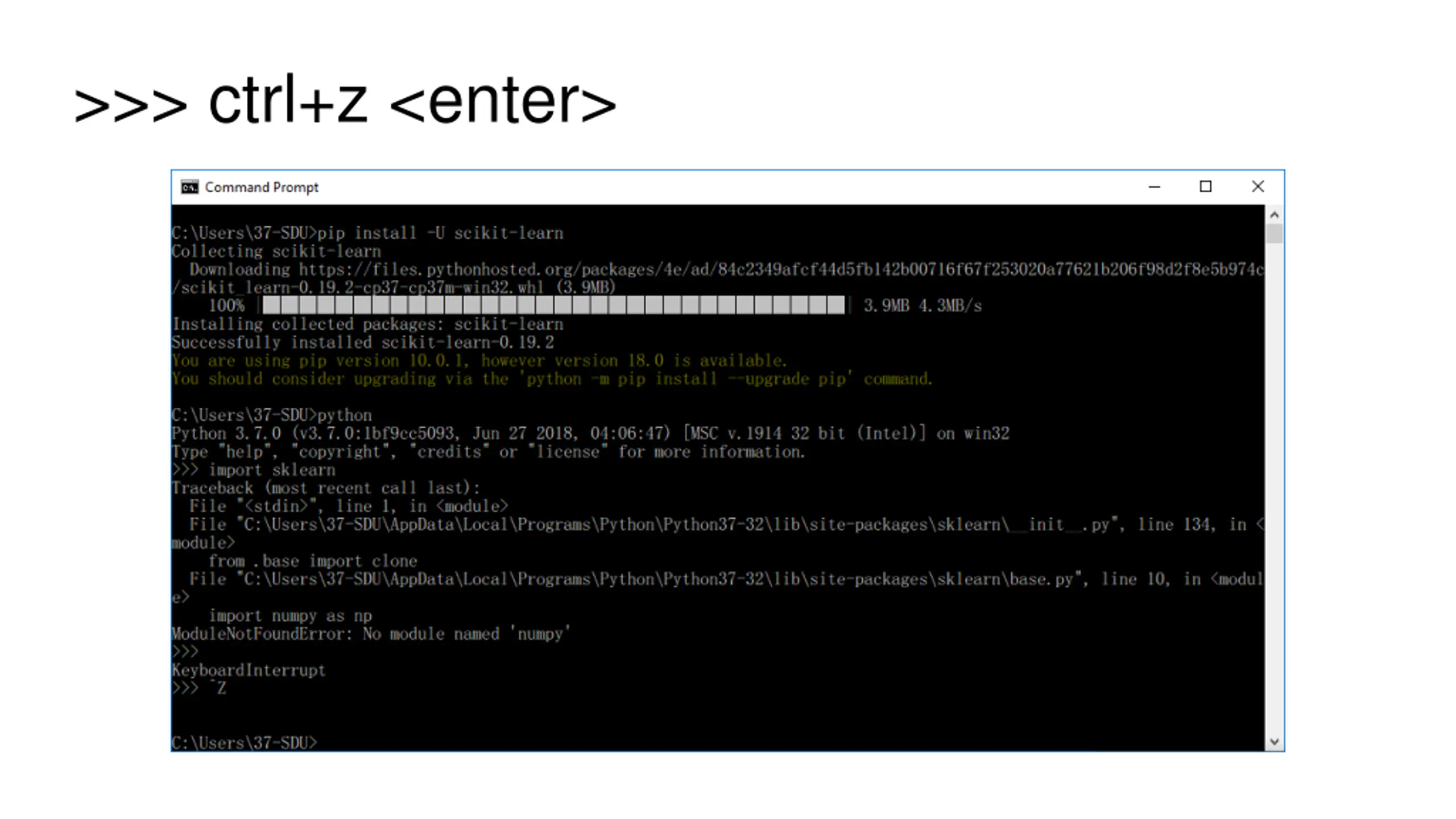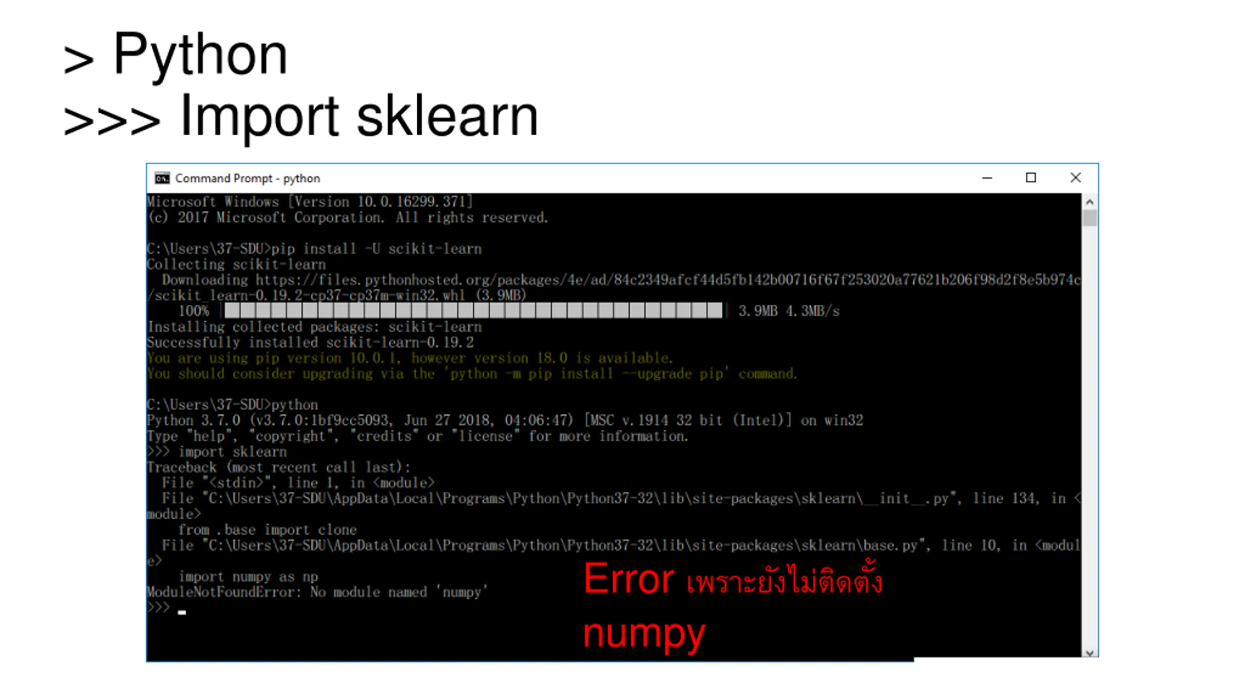 > Python >>> Import sklearn Error numpy