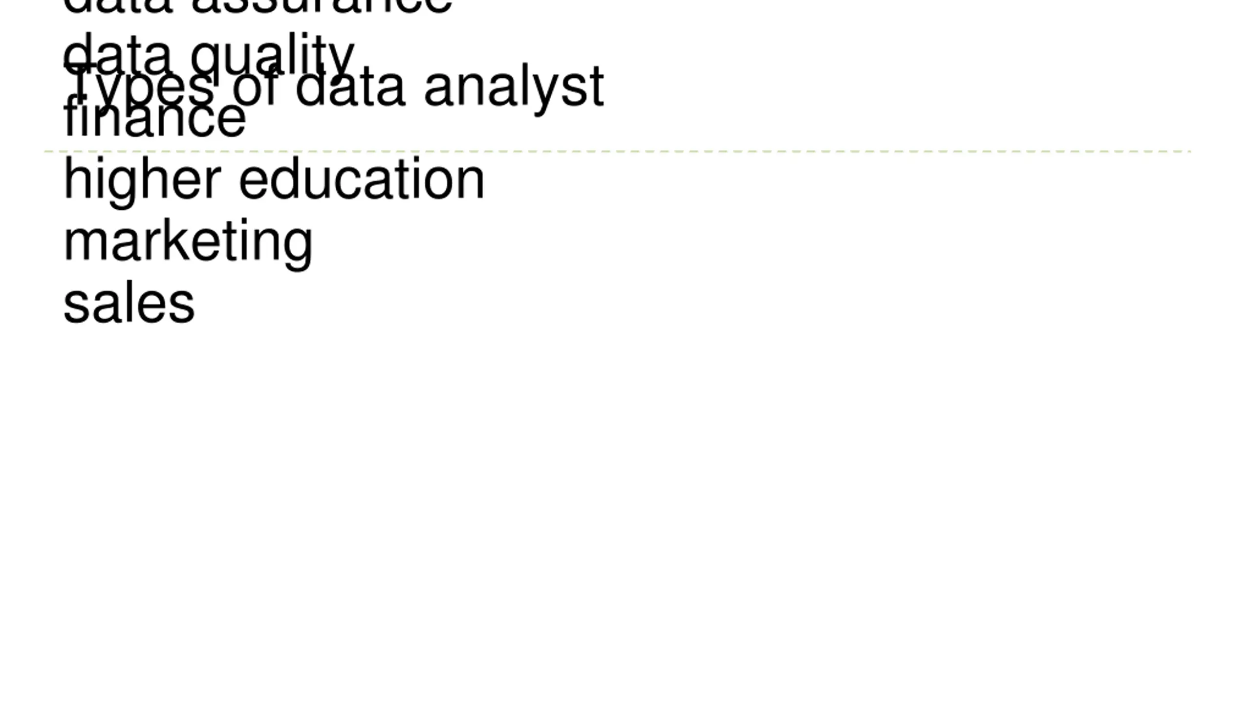 data assurance data quality Types of data analyst finance higher education marketing sales