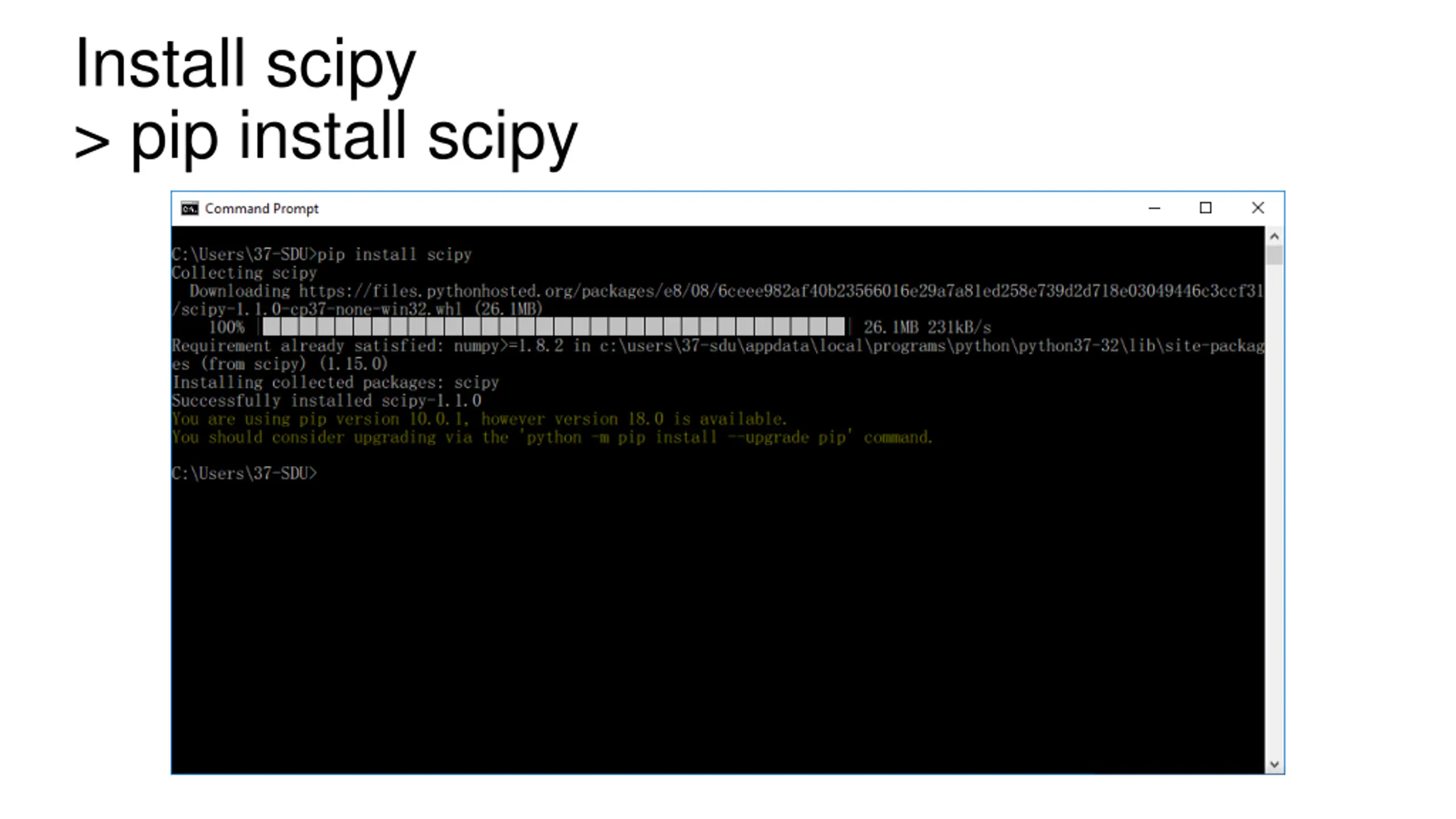 Install scipy > pip install scipy