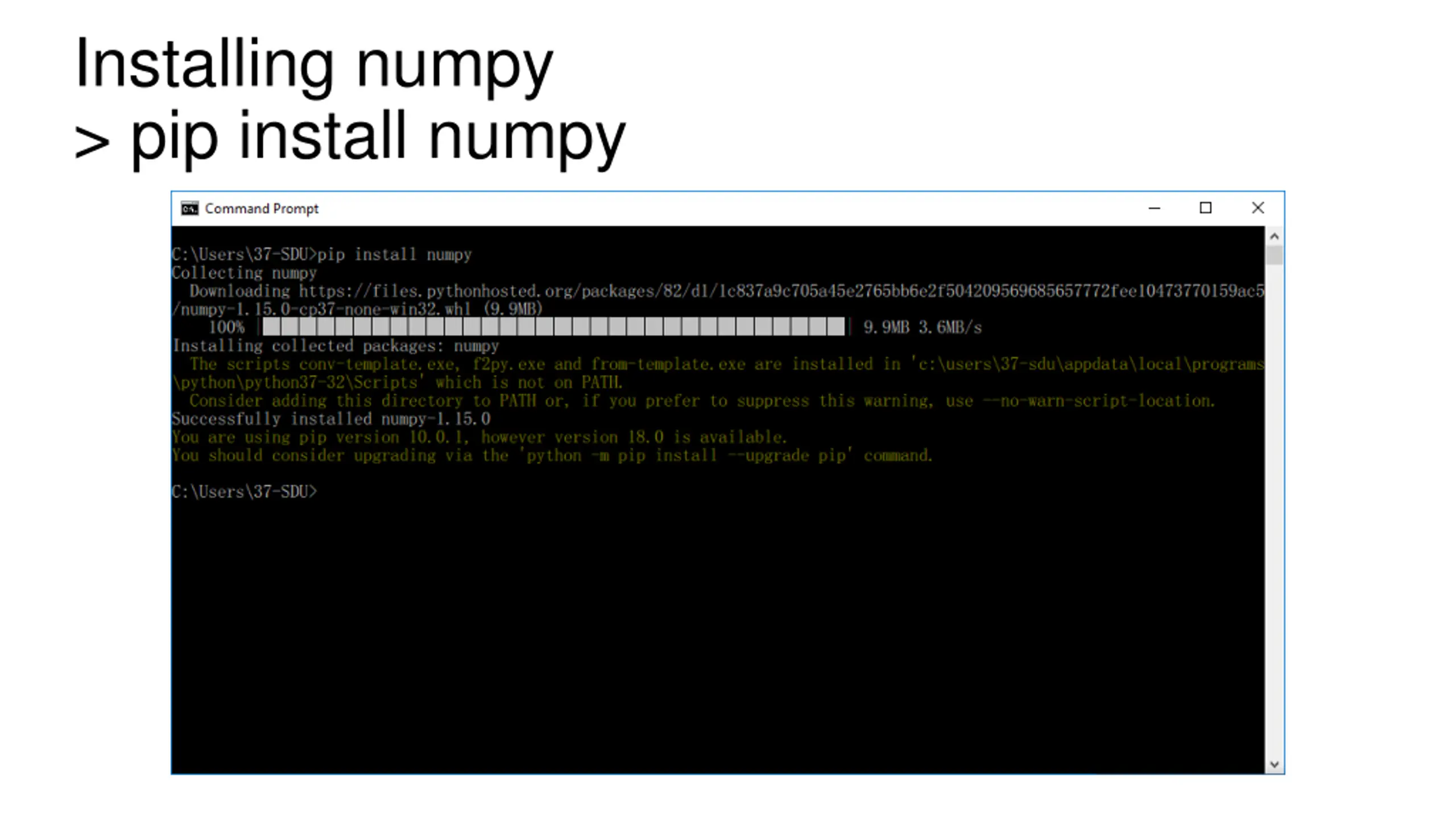 Installing numpy > pip install numpy