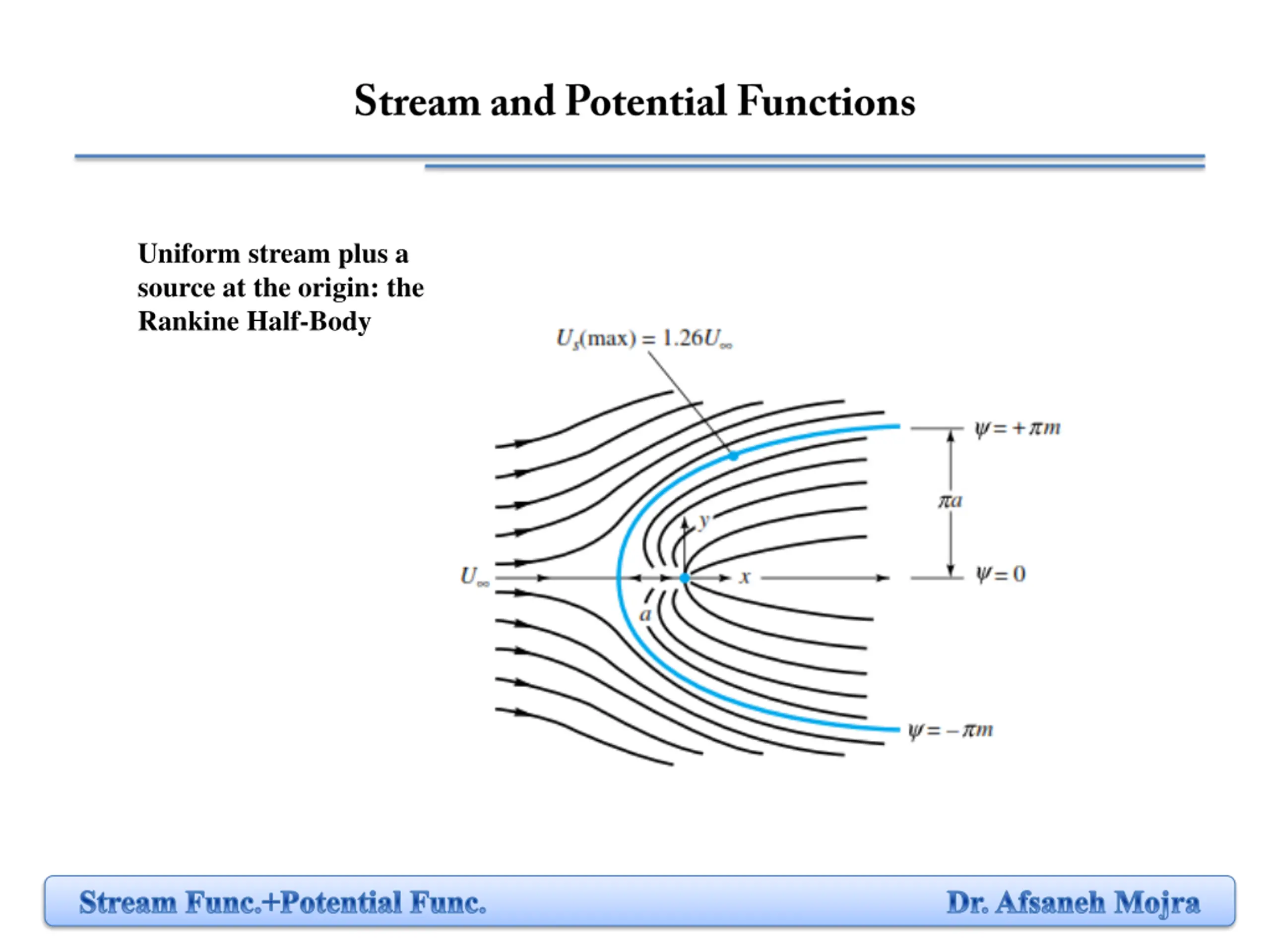 Uniform stream plus a source at the origin: the Rankine Half-Body Stream Func.+Potential Func. Dr. Afsaneh Mojra