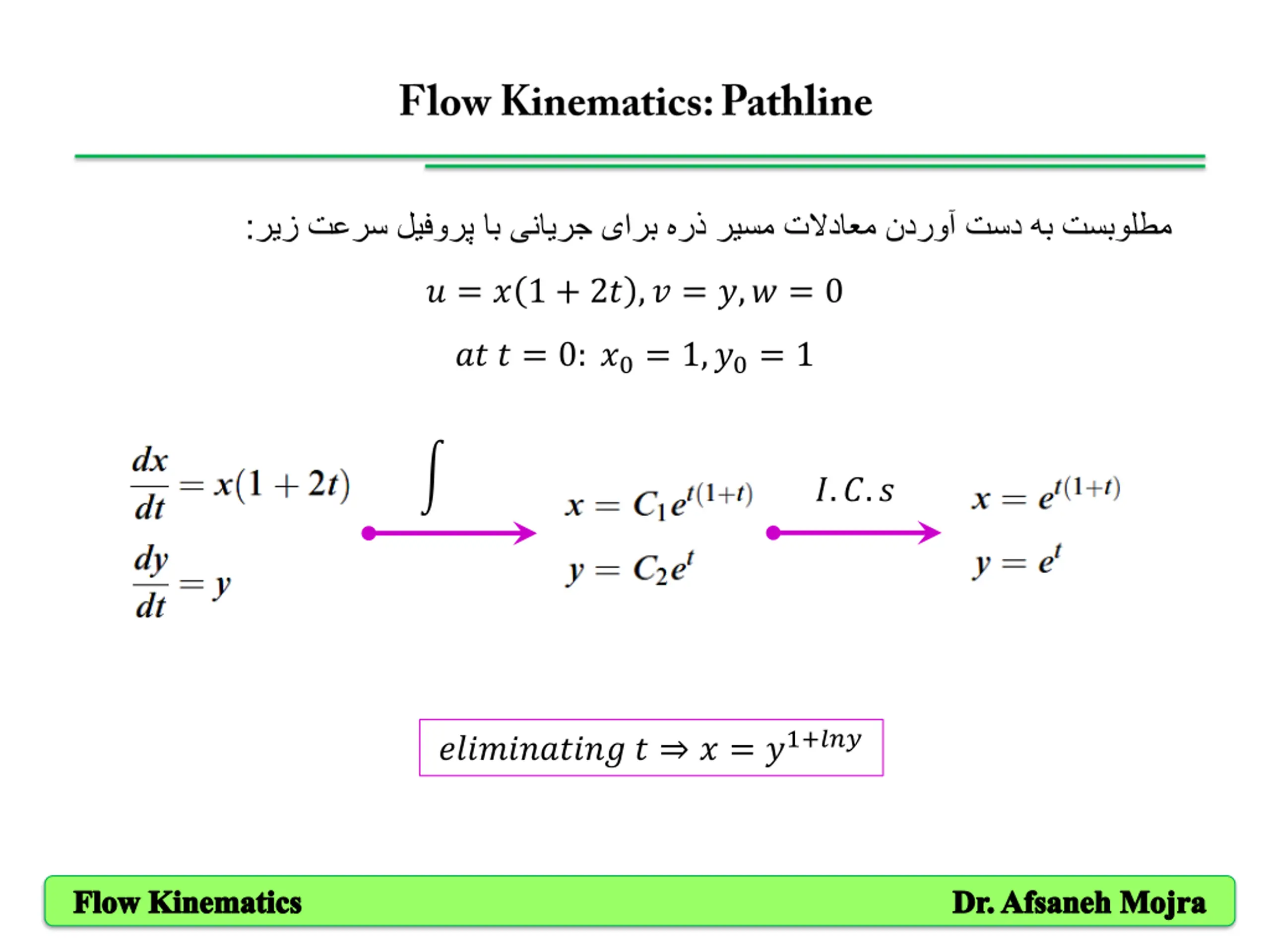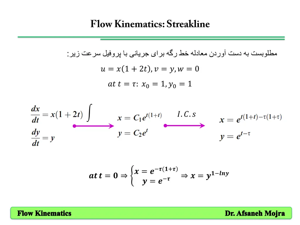: ? = ? 1 + 2? ,? = ?,? = 0 ?? ? = ?: ?0= 1,?0= 1 ?.?.? ) ?(?+? ??? = ? ? = ? ? = ?? ??? ? = ? ? Flow Kinematics Dr. Afsaneh Mojra