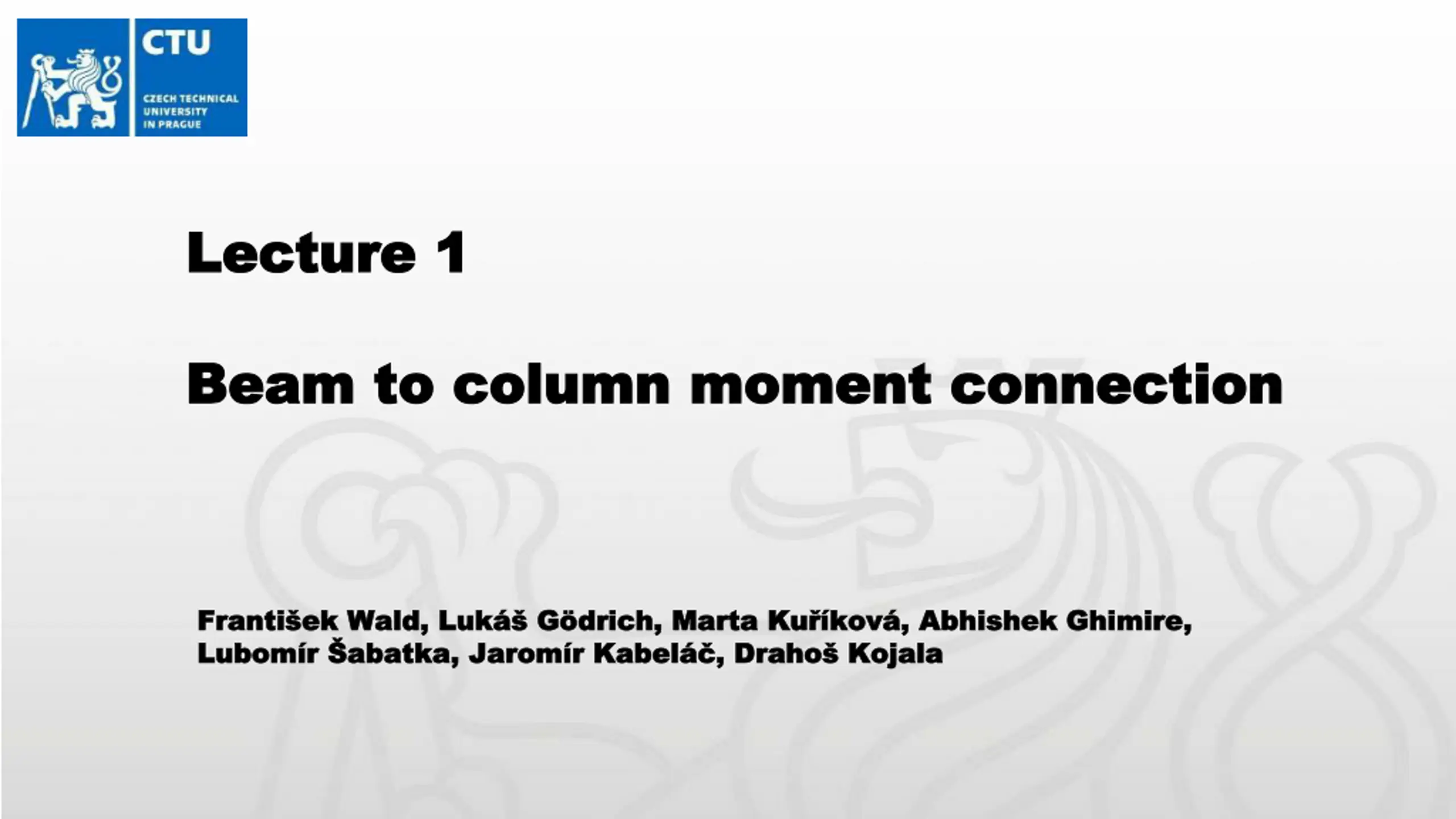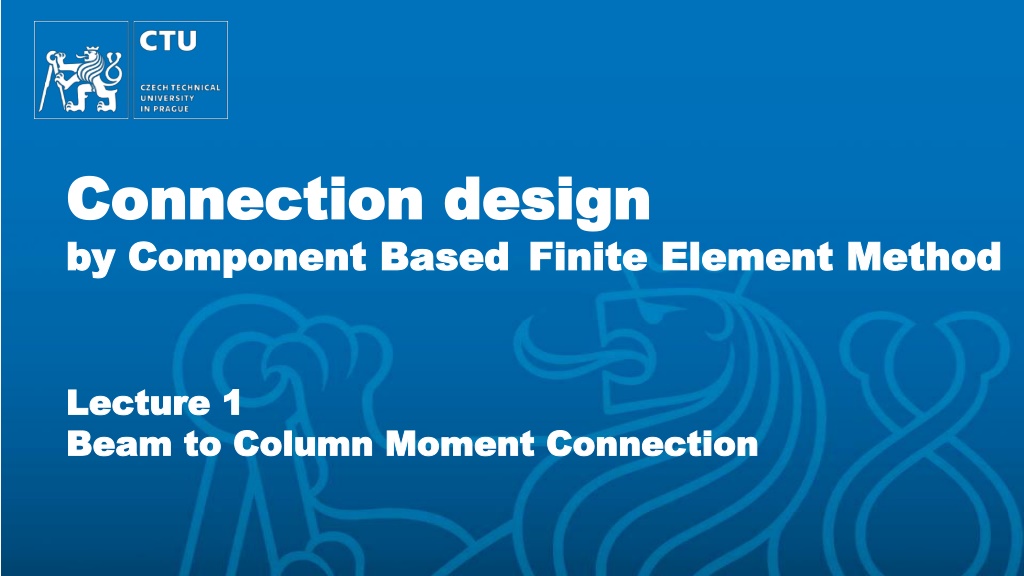 Lecture Lecture 1 1 Introduction Design models Global analyse B Beam eam to column moment connection to column moment connection Classification Component meth. Interaction Assessment I CBFEM General Validation Verification Franti ek Wald, Luk G drich, Marta Ku kov , Franti ek Wald, Luk G drich, Marta Ku kov , Abhishek Ghimire, Lubom r abatka, Jarom r Kabel , Lubom r abatka, Jarom r Kabel , Draho Abhishek Ghimire, Kojala Benchmark case Assessment II Draho Kojala Summary