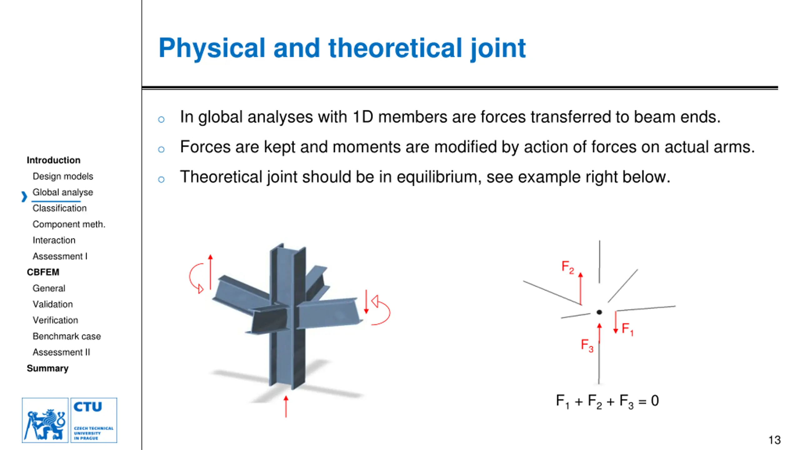 Joints in global analyses o Example of frame with its joints Introduction Design models Global analyse Classification Component meth. Interaction o If part of joint is flexible is in global analyses modelled as Assessment I CBFEM General Stiff Validation Flexible column web panel and semi-rigid connections Stiff column web panel and semi-rigid or pinned connections Stiff column web panel and semi-rigid or pinned connections column web panel and rigid connections Verification Benchmark case Assessment II Summary 12