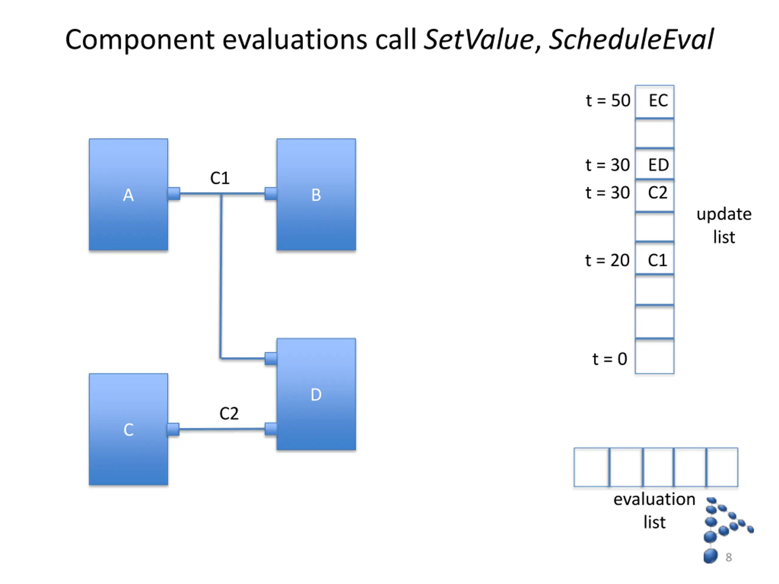Global Time is Advanced to t = 20 t = 50 EC t = 30 ED C1 t = 30 C2 A B update list t = 20 C1 t = 0 D C2 C evaluation list 10