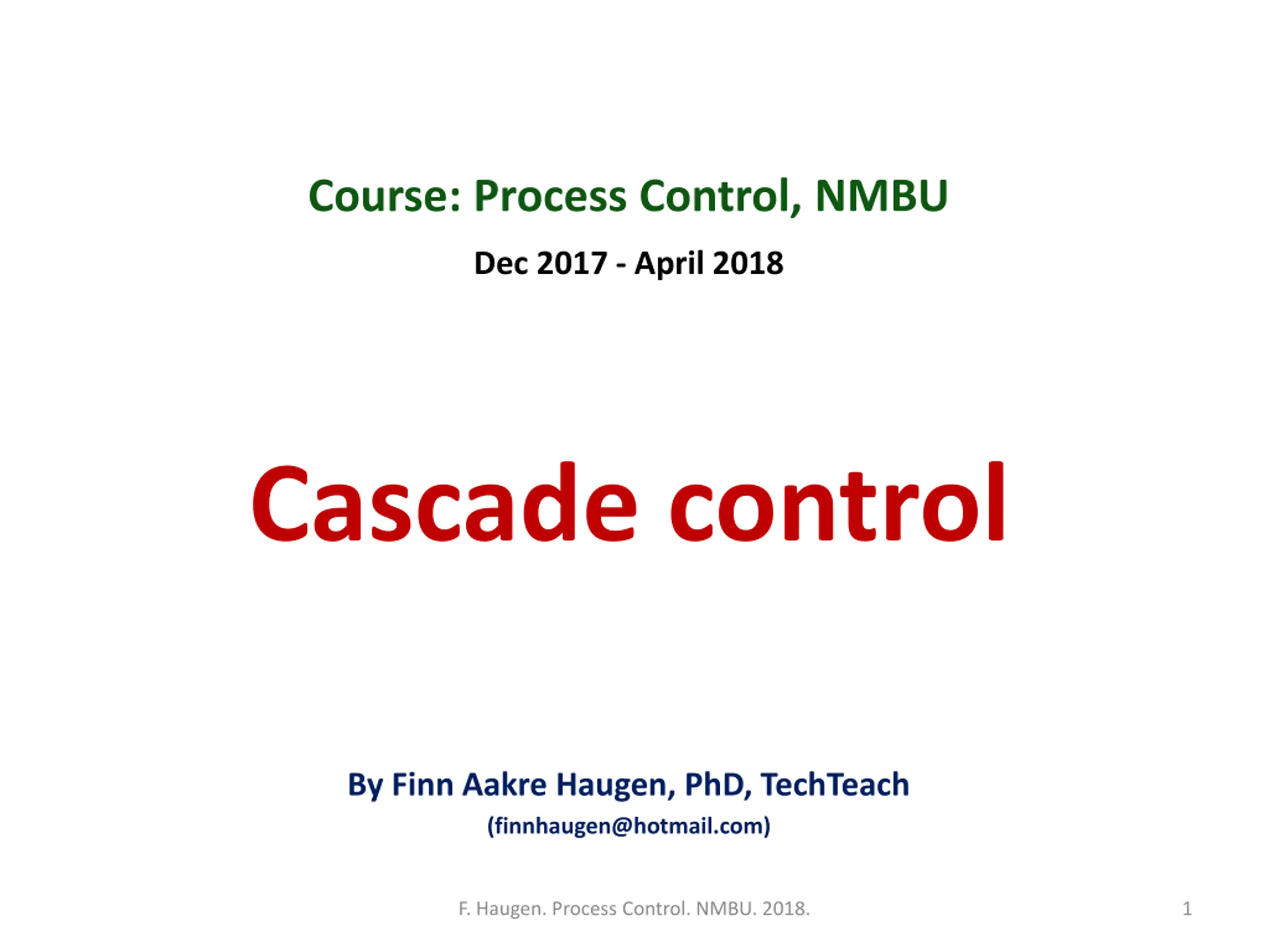 Course: Process Control, NMBU Dec 2017 - April 2018 Cascade control By Finn Aakre Haugen, PhD, TechTeach (finnhaugen@hotmail.com) F. Haugen. Process Control. NMBU. 2018. 1