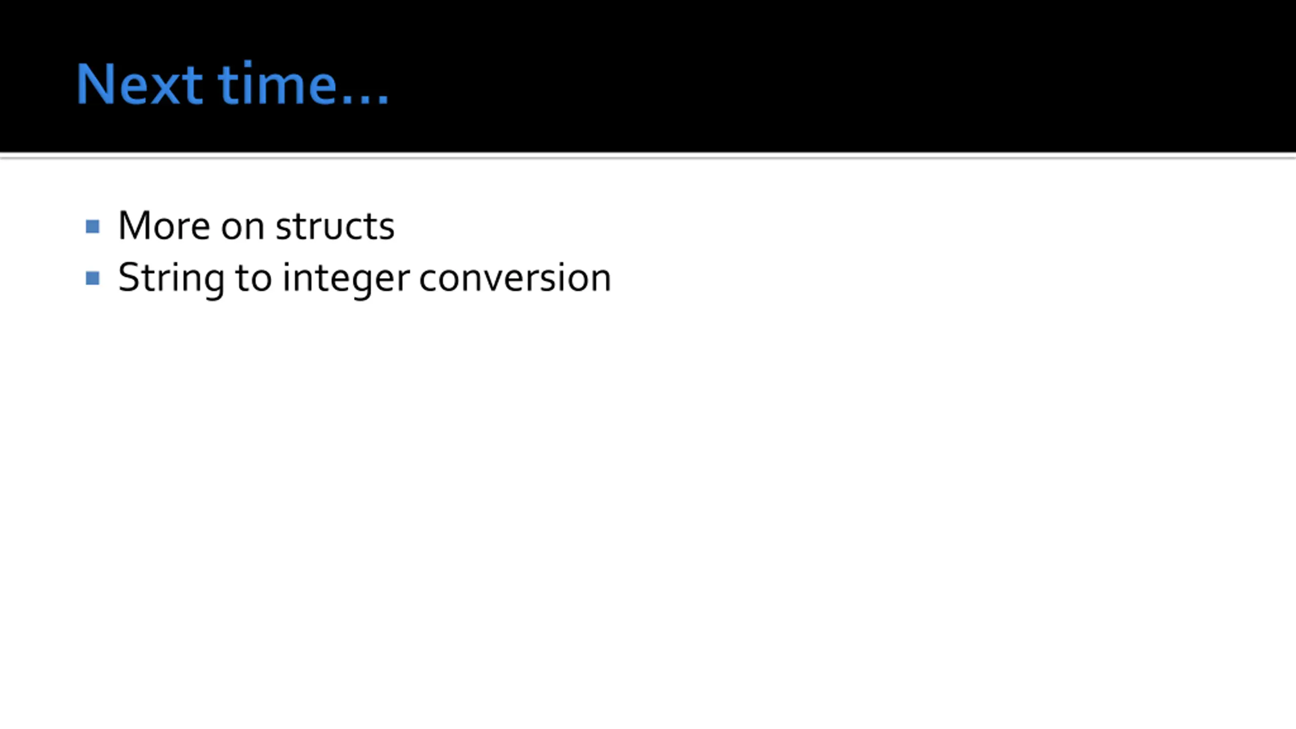 More on structs String to integer conversion