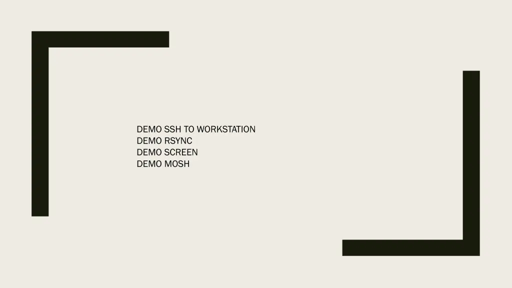 DEMO SSH TO WORKSTATION DEMO RSYNC DEMO SCREEN DEMO MOSH
