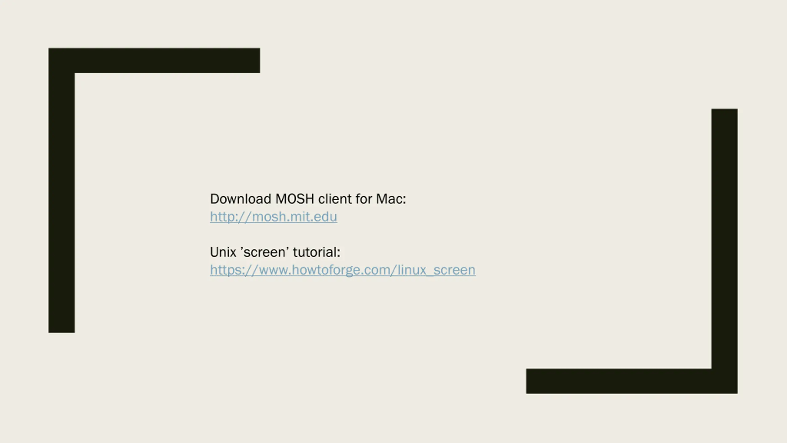 Download MOSH client for Mac: http://mosh.mit.edu Unix screen tutorial: https://www.howtoforge.com/linux_screen