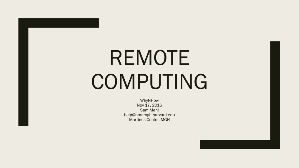 REMOTE COMPUTING WhyNHow Nov 17, 2016 Sam Mehl help@nmr.mgh.harvard.edu Martinos Center, MGH