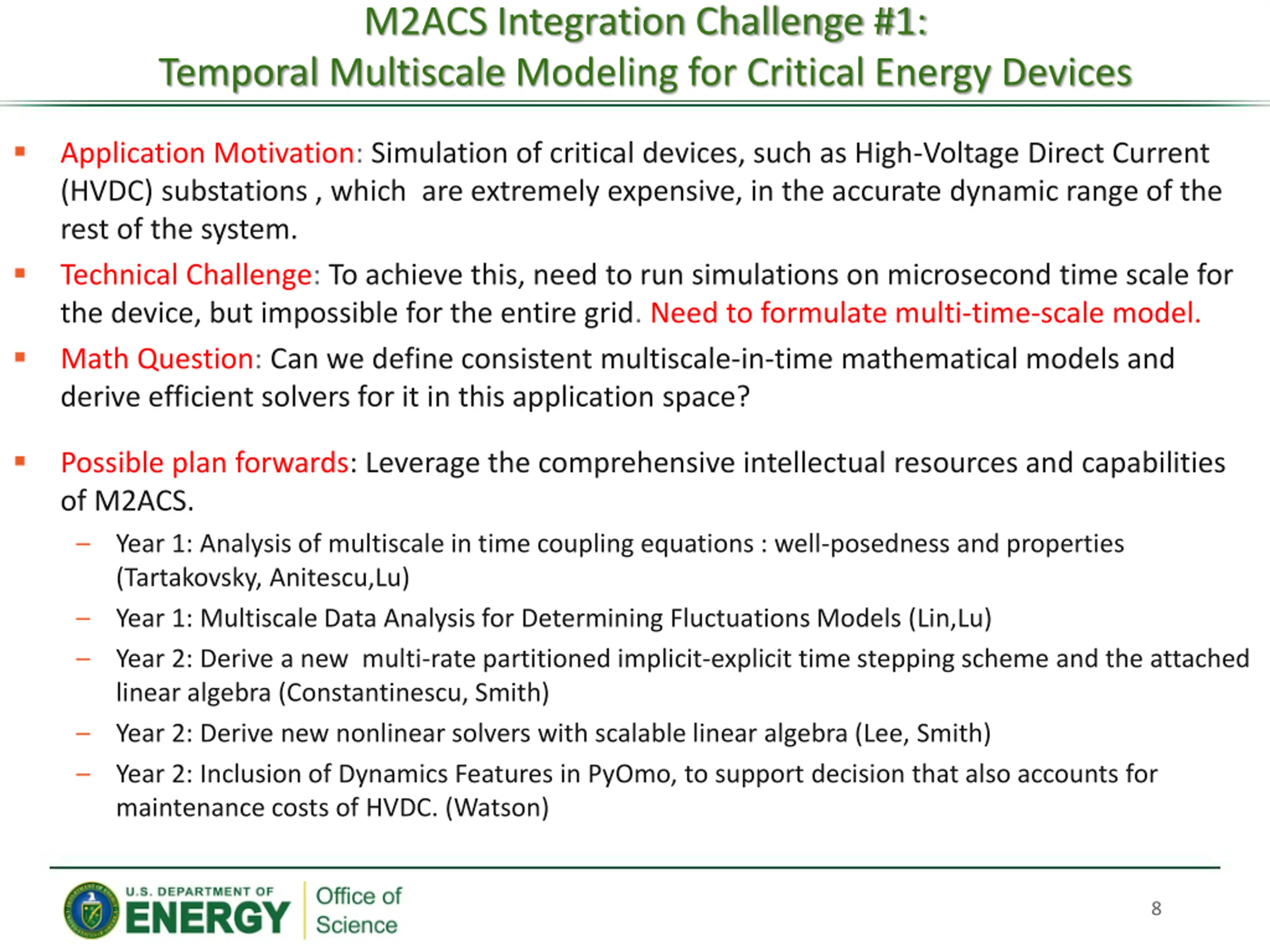 Multifaceted Mathematics for Complex Energy Systems (M2ACS) Project Director: Mihai Anitescu, Argonne National Lab 7
