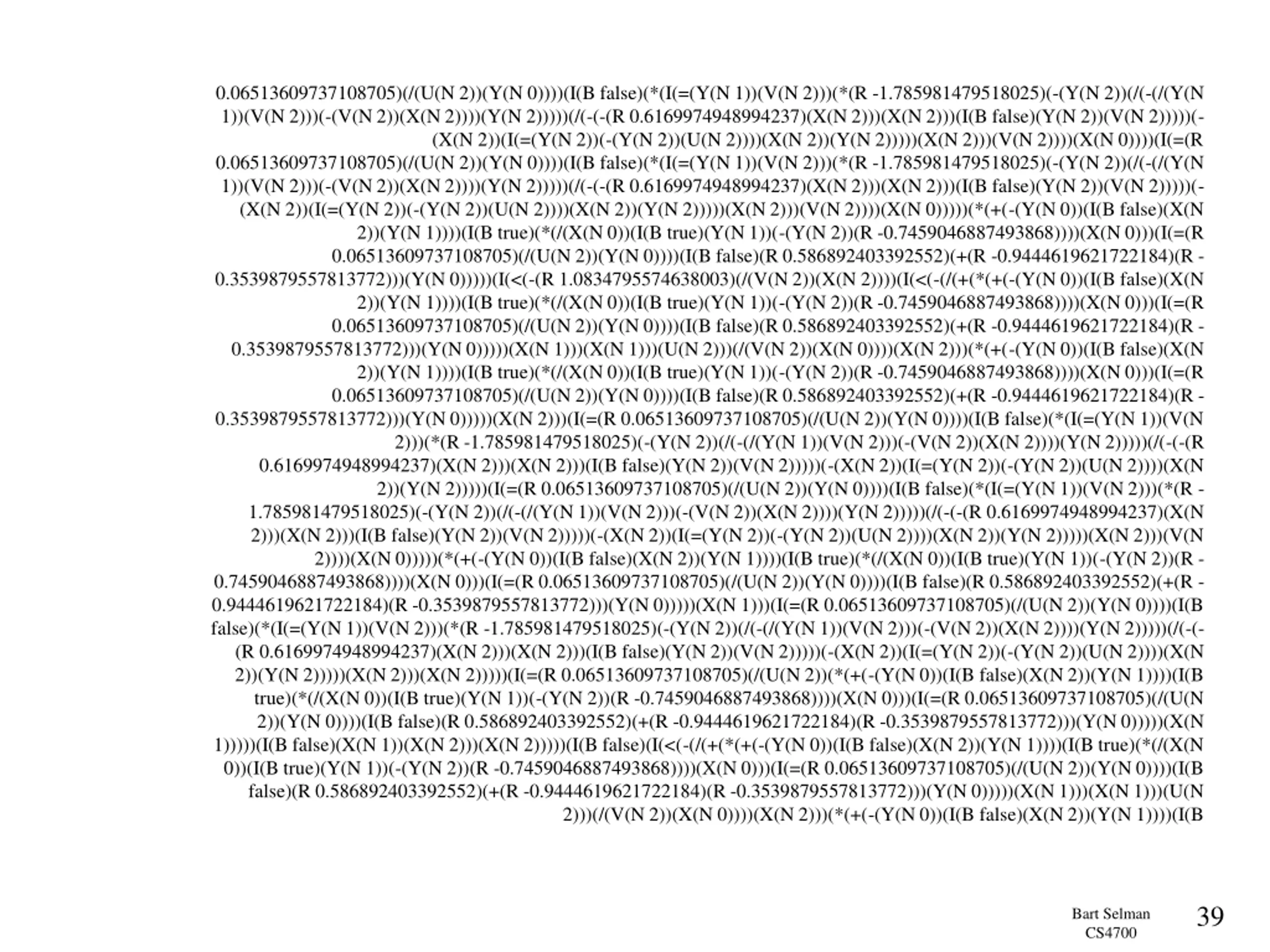 0.06513609737108705)(/(U(N 2))(Y(N 0))))(I(B false)(*(I(=(Y(N 1))(V(N 2)))(*(R -1.785981479518025)(-(Y(N 2))(/(-(/(Y(N 1))(V(N 2)))(-(V(N 2))(X(N 2))))(Y(N 2)))))(/(-(-(R 0.6169974948994237)(X(N 2)))(X(N 2)))(I(B false)(Y(N 2))(V(N 2)))))(- (X(N 2))(I(=(Y(N 2))(-(Y(N 2))(U(N 2))))(X(N 2))(Y(N 2)))))(X(N 2)))(V(N 2))))(X(N 0))))(I(=(R 0.06513609737108705)(/(U(N 2))(Y(N 0))))(I(B false)(*(I(=(Y(N 1))(V(N 2)))(*(R -1.785981479518025)(-(Y(N 2))(/(-(/(Y(N 1))(V(N 2)))(-(V(N 2))(X(N 2))))(Y(N 2)))))(/(-(-(R 0.6169974948994237)(X(N 2)))(X(N 2)))(I(B false)(Y(N 2))(V(N 2)))))(- (X(N 2))(I(=(Y(N 2))(-(Y(N 2))(U(N 2))))(X(N 2))(Y(N 2)))))(X(N 2)))(V(N 2))))(X(N 0)))))(*(+(-(Y(N 0))(I(B false)(X(N 2))(Y(N 1))))(I(B true)(*(/(X(N 0))(I(B true)(Y(N 1))(-(Y(N 2))(R -0.7459046887493868))))(X(N 0)))(I(=(R 0.06513609737108705)(/(U(N 2))(Y(N 0))))(I(B false)(R 0.586892403392552)(+(R -0.9444619621722184)(R - 0.3539879557813772)))(Y(N 0)))))(I(<(-(R 1.0834795574638003)(/(V(N 2))(X(N 2))))(I(<(-(/(+(*(+(-(Y(N 0))(I(B false)(X(N 2))(Y(N 1))))(I(B true)(*(/(X(N 0))(I(B true)(Y(N 1))(-(Y(N 2))(R -0.7459046887493868))))(X(N 0)))(I(=(R 0.06513609737108705)(/(U(N 2))(Y(N 0))))(I(B false)(R 0.586892403392552)(+(R -0.9444619621722184)(R - 0.3539879557813772)))(Y(N 0)))))(X(N 1)))(X(N 1)))(U(N 2)))(/(V(N 2))(X(N 0))))(X(N 2)))(*(+(-(Y(N 0))(I(B false)(X(N 2))(Y(N 1))))(I(B true)(*(/(X(N 0))(I(B true)(Y(N 1))(-(Y(N 2))(R -0.7459046887493868))))(X(N 0)))(I(=(R 0.06513609737108705)(/(U(N 2))(Y(N 0))))(I(B false)(R 0.586892403392552)(+(R -0.9444619621722184)(R - 0.3539879557813772)))(Y(N 0)))))(X(N 2)))(I(=(R 0.06513609737108705)(/(U(N 2))(Y(N 0))))(I(B false)(*(I(=(Y(N 1))(V(N 2)))(*(R -1.785981479518025)(-(Y(N 2))(/(-(/(Y(N 1))(V(N 2)))(-(V(N 2))(X(N 2))))(Y(N 2)))))(/(-(-(R 0.6169974948994237)(X(N 2)))(X(N 2)))(I(B false)(Y(N 2))(V(N 2)))))(-(X(N 2))(I(=(Y(N 2))(-(Y(N 2))(U(N 2))))(X(N 2))(Y(N 2)))))(I(=(R 0.06513609737108705)(/(U(N 2))(Y(N 0))))(I(B false)(*(I(=(Y(N 1))(V(N 2)))(*(R - 1.785981479518025)(-(Y(N 2))(/(-(/(Y(N 1))(V(N 2)))(-(V(N 2))(X(N 2))))(Y(N 2)))))(/(-(-(R 0.6169974948994237)(X(N 2)))(X(N 2)))(I(B false)(Y(N 2))(V(N 2)))))(-(X(N 2))(I(=(Y(N 2))(-(Y(N 2))(U(N 2))))(X(N 2))(Y(N 2)))))(X(N 2)))(V(N 2))))(X(N 0)))))(*(+(-(Y(N 0))(I(B false)(X(N 2))(Y(N 1))))(I(B true)(*(/(X(N 0))(I(B true)(Y(N 1))(-(Y(N 2))(R - 0.7459046887493868))))(X(N 0)))(I(=(R 0.06513609737108705)(/(U(N 2))(Y(N 0))))(I(B false)(R 0.586892403392552)(+(R - 0.9444619621722184)(R -0.3539879557813772)))(Y(N 0)))))(X(N 1)))(I(=(R 0.06513609737108705)(/(U(N 2))(Y(N 0))))(I(B false)(*(I(=(Y(N 1))(V(N 2)))(*(R -1.785981479518025)(-(Y(N 2))(/(-(/(Y(N 1))(V(N 2)))(-(V(N 2))(X(N 2))))(Y(N 2)))))(/(-(- (R 0.6169974948994237)(X(N 2)))(X(N 2)))(I(B false)(Y(N 2))(V(N 2)))))(-(X(N 2))(I(=(Y(N 2))(-(Y(N 2))(U(N 2))))(X(N 2))(Y(N 2)))))(X(N 2)))(X(N 2)))))(I(=(R 0.06513609737108705)(/(U(N 2))(*(+(-(Y(N 0))(I(B false)(X(N 2))(Y(N 1))))(I(B true)(*(/(X(N 0))(I(B true)(Y(N 1))(-(Y(N 2))(R -0.7459046887493868))))(X(N 0)))(I(=(R 0.06513609737108705)(/(U(N 2))(Y(N 0))))(I(B false)(R 0.586892403392552)(+(R -0.9444619621722184)(R -0.3539879557813772)))(Y(N 0)))))(X(N 1)))))(I(B false)(X(N 1))(X(N 2)))(X(N 2)))))(I(B false)(I(<(-(/(+(*(+(-(Y(N 0))(I(B false)(X(N 2))(Y(N 1))))(I(B true)(*(/(X(N 0))(I(B true)(Y(N 1))(-(Y(N 2))(R -0.7459046887493868))))(X(N 0)))(I(=(R 0.06513609737108705)(/(U(N 2))(Y(N 0))))(I(B false)(R 0.586892403392552)(+(R -0.9444619621722184)(R -0.3539879557813772)))(Y(N 0)))))(X(N 1)))(X(N 1)))(U(N 2)))(/(V(N 2))(X(N 0))))(X(N 2)))(*(+(-(Y(N 0))(I(B false)(X(N 2))(Y(N 1))))(I(B 39 Bart Selman CS4700