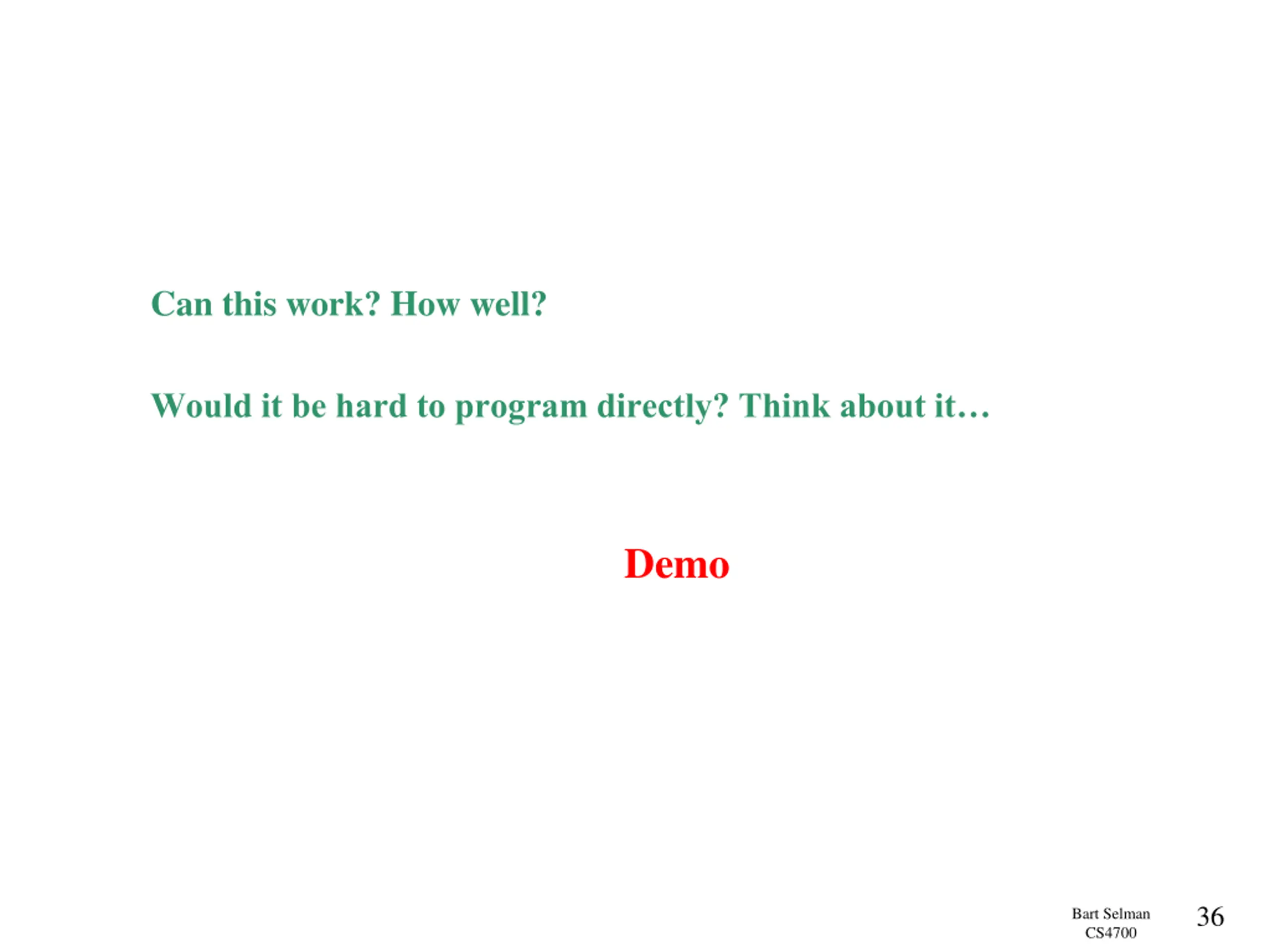 Can this work? How well? Would it be hard to program directly? Think about it Demo 36 Bart Selman CS4700