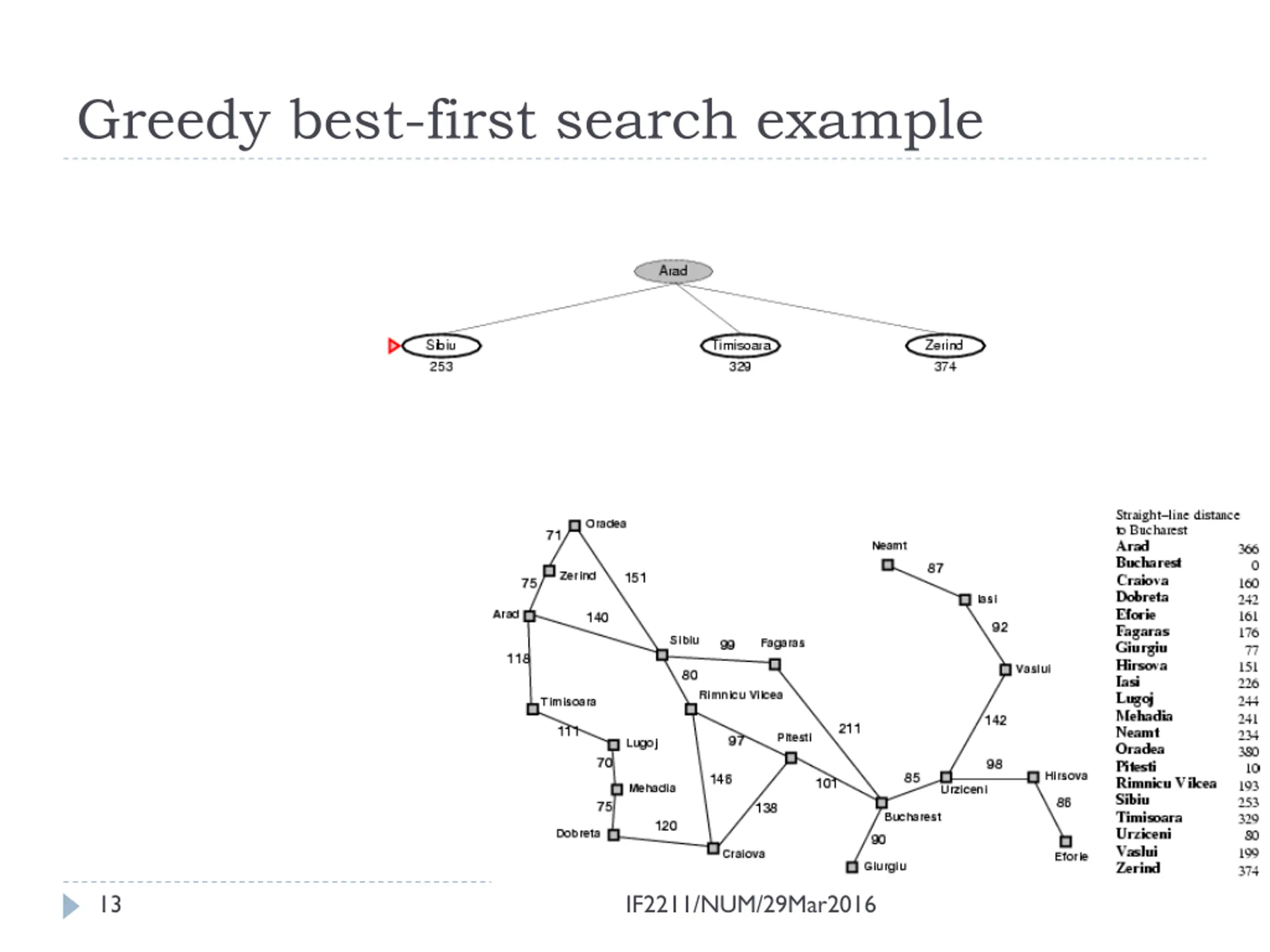 Greedy best-first search example 12 IF2211/NUM/29Mar2016