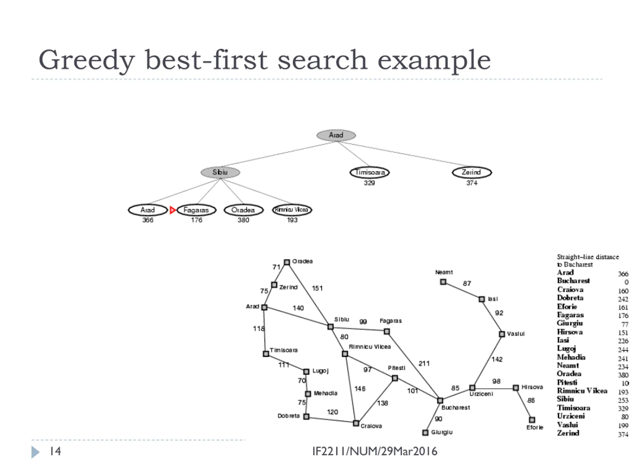 Greedy best-first search example 13 IF2211/NUM/29Mar2016