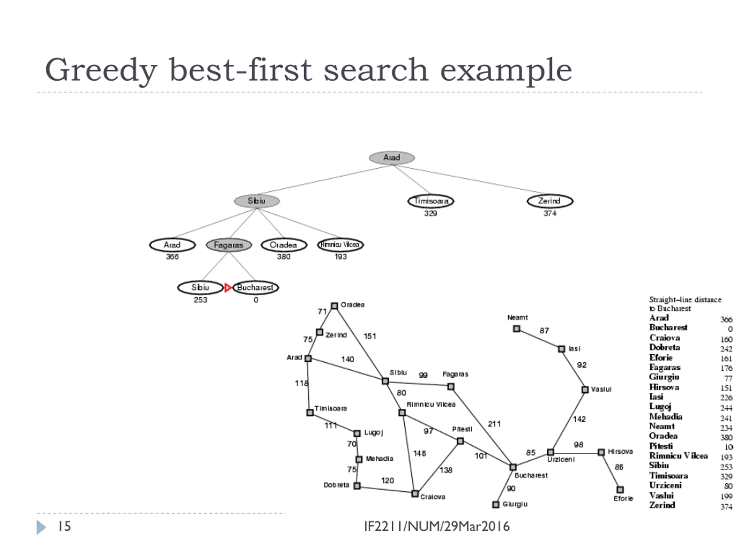 Greedy best-first search example 14 IF2211/NUM/29Mar2016