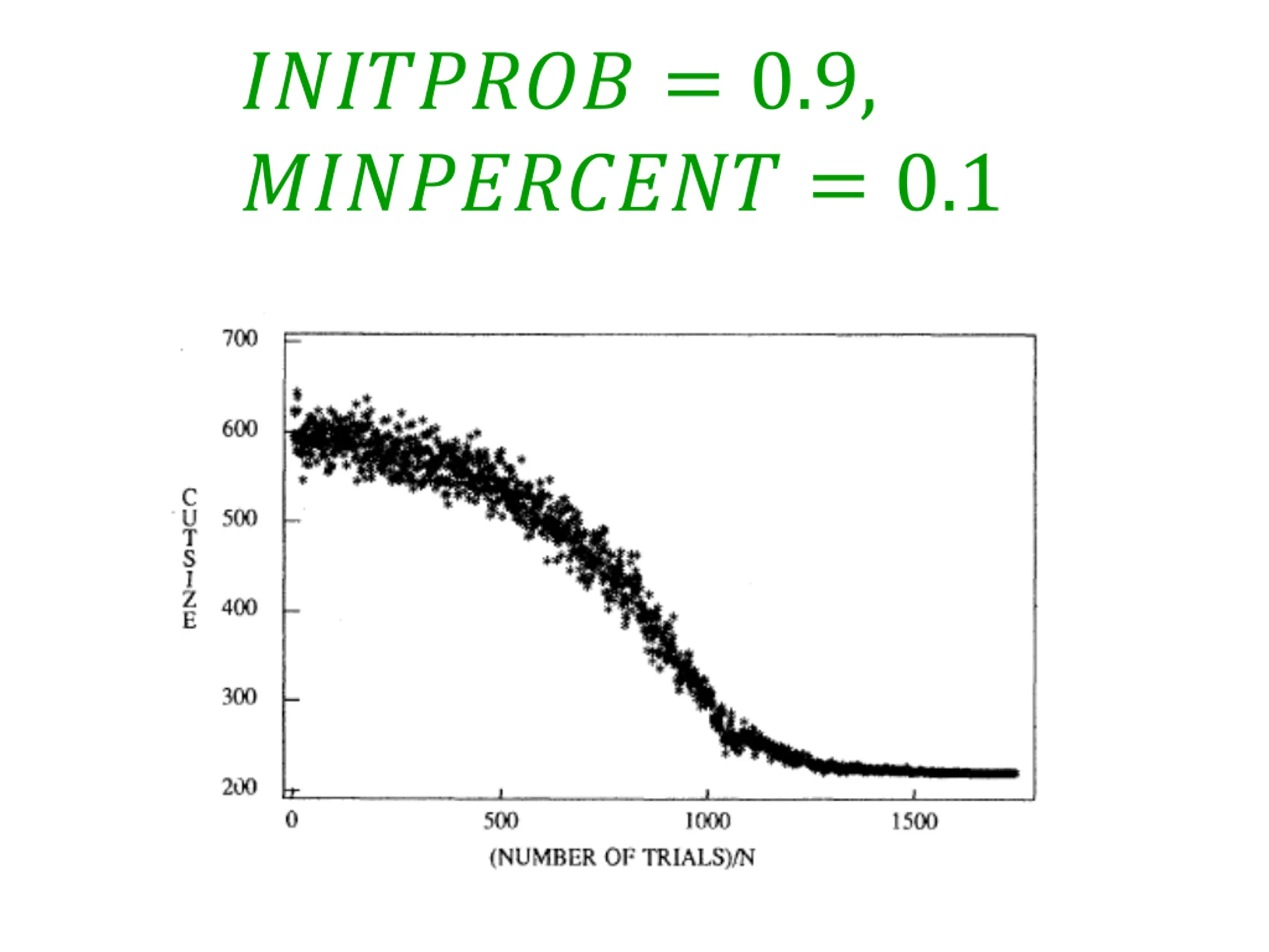 The annealing parameters Two parameters control the range of temperature considered: ????????: Pick the initial temperature so that you accept ???????? of the moves ??????????: You freeze when you accept at most ?????????? (at 5 temperatures since the last winner found) 50