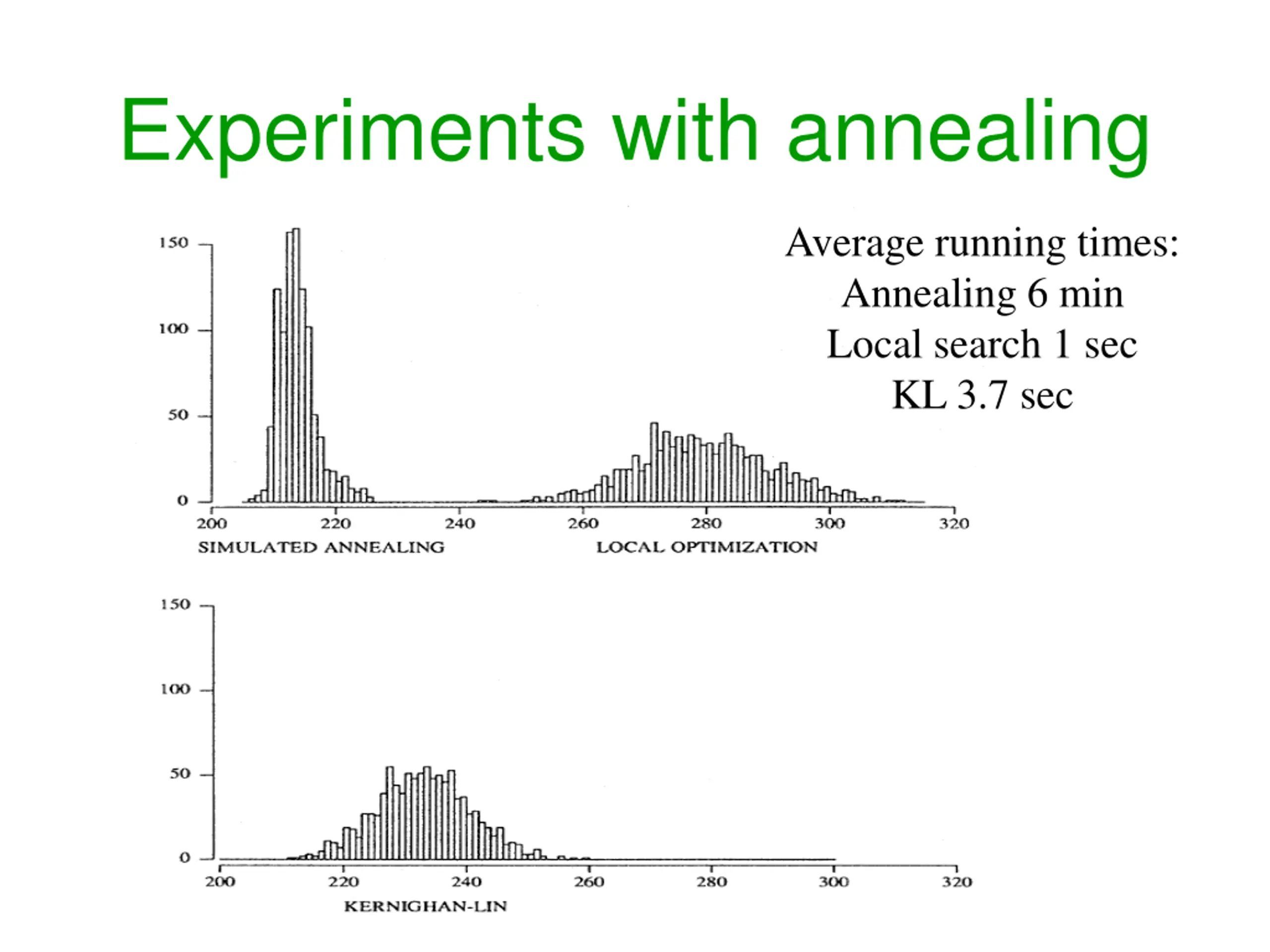 Experiments with annealing Average running times: Annealing 6 min Local search 1 sec KL 3.7 sec