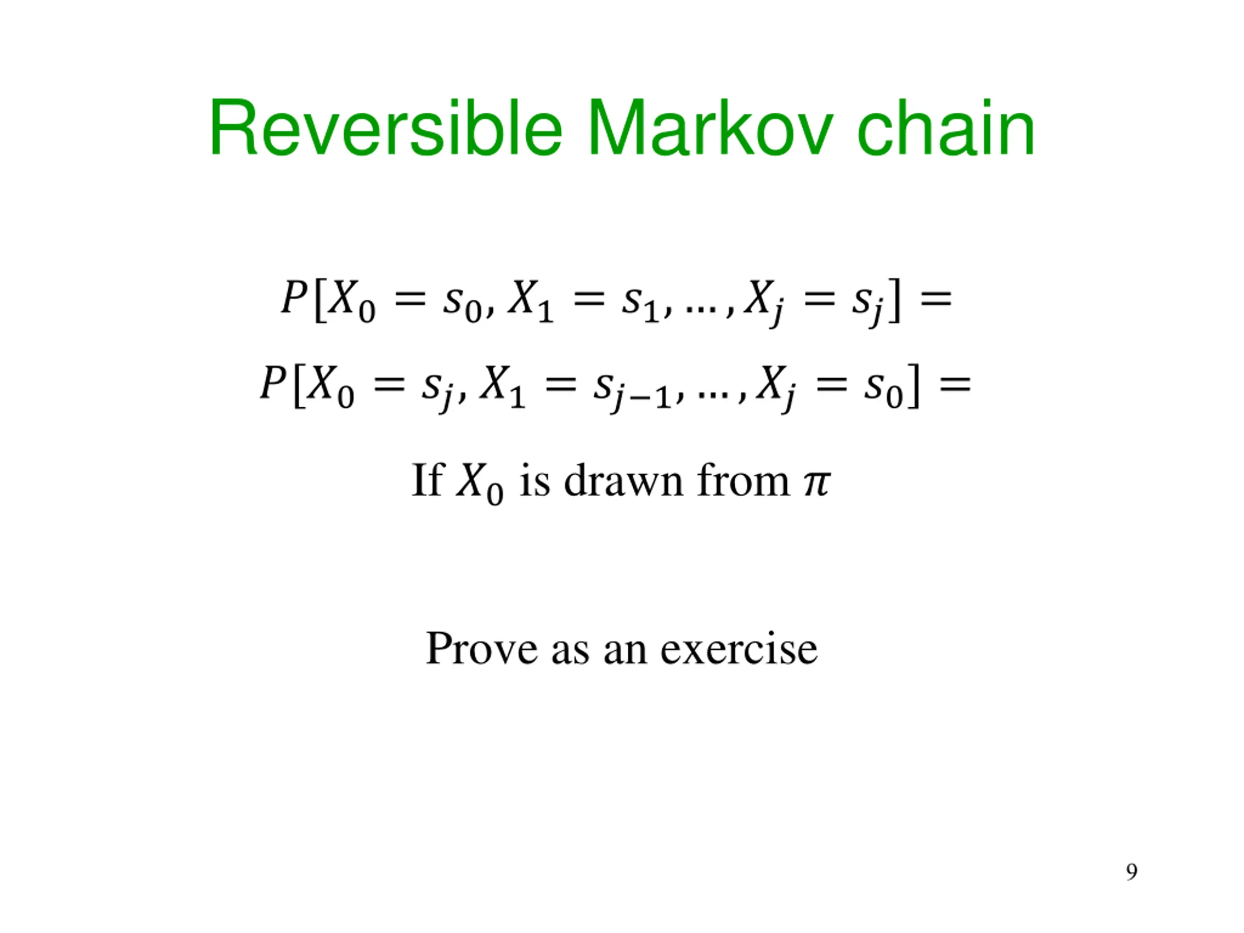 Reversible Markov chain ?[?0= ?0, ?1= ?1, ,??= ??] = ?[?0= ??, ?1= ?? 1, ,??= ?0] = If ?0is drawn from ? Prove as an exercise 9
