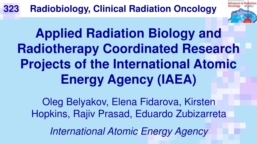 323 Radiobiology, Clinical Radiation Oncology Applied Radiation Biology and Radiotherapy Coordinated Research Projects of the International Atomic Energy Agency (IAEA) Oleg Belyakov, Elena Fidarova, Kirsten Hopkins, Rajiv Prasad, Eduardo Zubizarreta International Atomic Energy Agency
