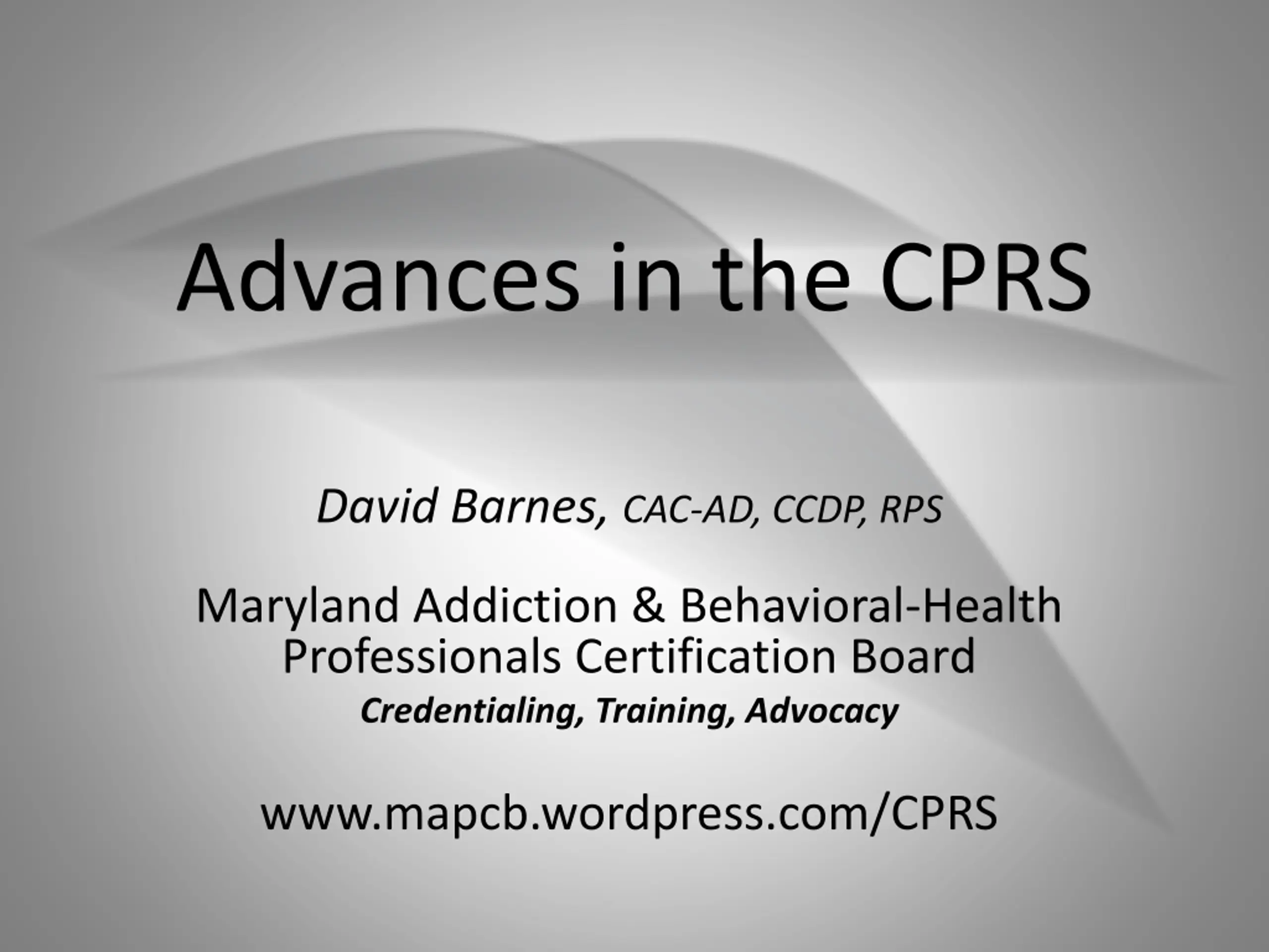 Advances in the CPRS David Barnes, CAC-AD, CCDP, RPS Maryland Addiction & Behavioral-Health Professionals Certification Board Credentialing, Training, Advocacy www.mapcb.wordpress.com/CPRS