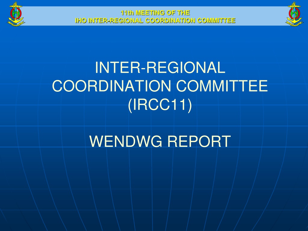11th MEETING OF THE IHO INTER-REGIONAL COORDINATION COMMITTEE INTER-REGIONAL COORDINATION COMMITTEE (IRCC11) WENDWG REPORT