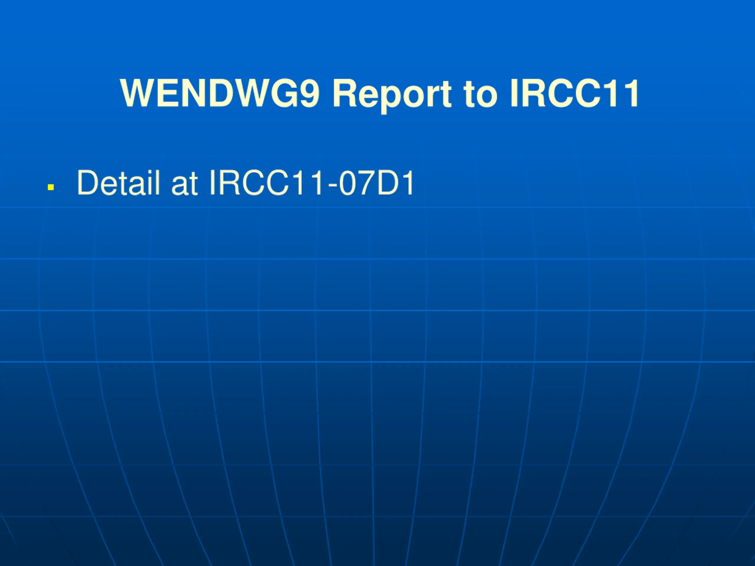 WENDWG9 Report to IRCC11 Detail at IRCC11-07D1