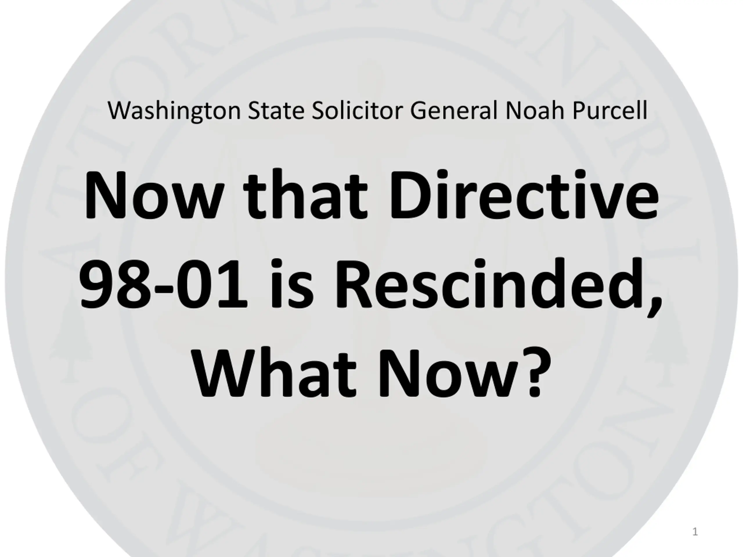 Washington State Solicitor General Noah Purcell Now that Directive 98-01 is Rescinded, What Now? 1
